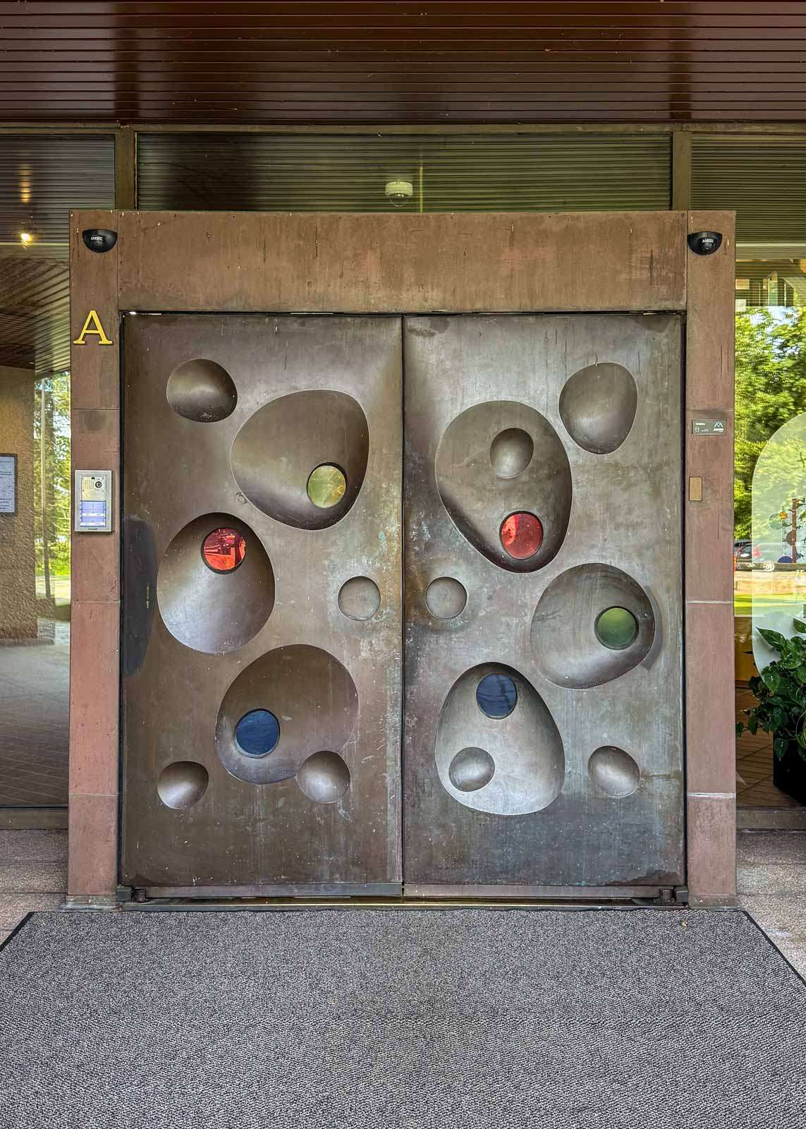 Meressä saaren edustalla on Anna Uddenbergin veistos “Free Fall” – Ruotsin valtion lahja Suomelle sekin. Ulkoteoksista tavallaan ovelin kokemus tällä kertaa oli lasisaunan lähellä sijaitseva ääntelevä sieni. Kaipa sekin on ollut siellä jo pitkään, mutta olemme jotenkin onnistuneet sen aikaisemmin ohittamaan. Rantasaunan peiliseinät ja katsojan kuvaa vääristävät peilit kalliolla puistossa houkuttelevat puolestaan peiliselfieiden ottamiseen.