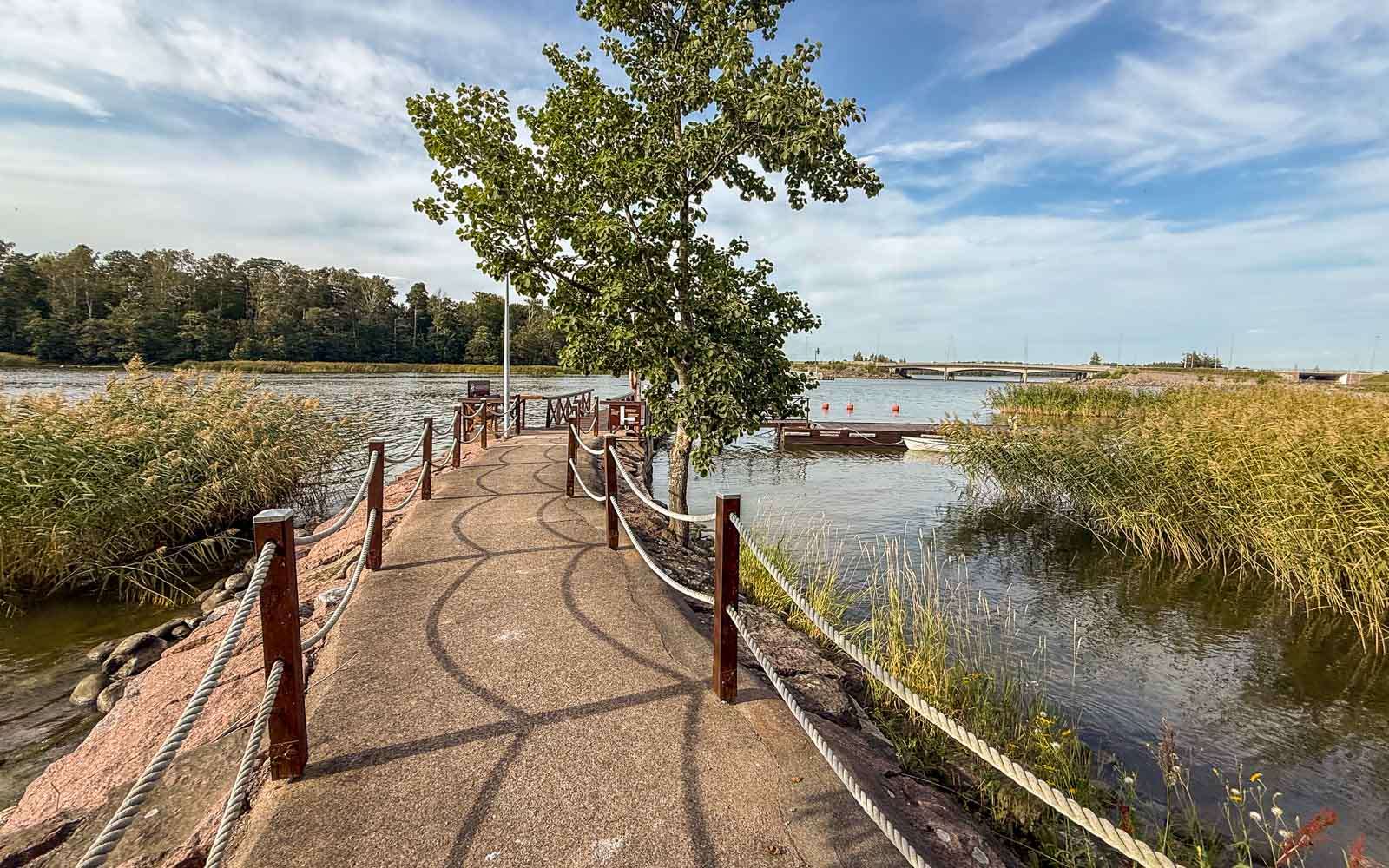 Kotiuduttuamme riensimme tutustumaan merelliseen ympäristöömme – niin kauan kuin sää oli vielä kauniin kesäinen. Hanaholmen-hotellihan sijaitsee Hanasaarella, vaikkei sitä helposti saareksi mielläkään, sillä Länsiväylän sillat liittävät sen jokseenkin saumattomasti muuhun Espooseen ja Helsinkiin.