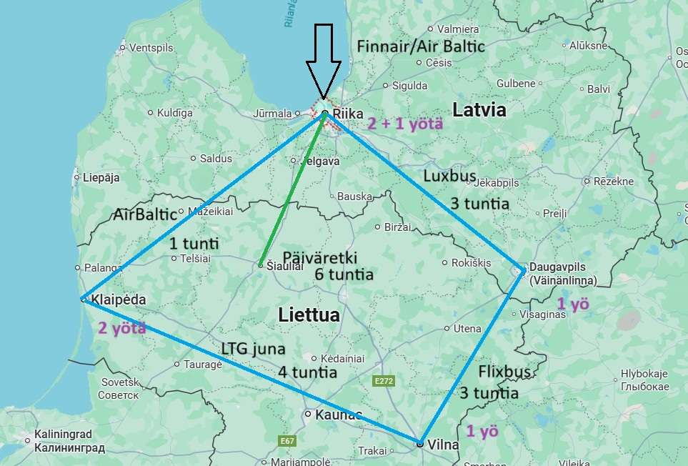 - Lento Riikan kautta Palangaan (Klaipedankin lentokenttä)