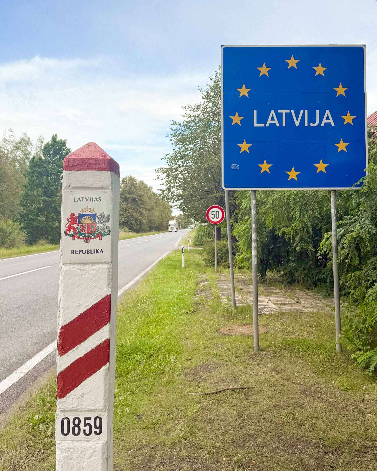 Aikamme ristejä tutkailtuamme – ja kuvattuamme, vaikkemme ihan 500 000 kuvaan päässeet – oli aika jatkaa matkaa. Meidän tapauksessamme matka jatkui takaisin Riikaan, mutta Jelgavan kautta. Paluumatkalla pysähdyimme myös Liettuan ja Latvian rajalle, jos vaikka joku olisi halunnut dokumentoida maiden välisen maarajan ylityksen :-) Flixbus Vilnasta Daugavpilsiin ei tietenkään pysähtynyt rajalla, joten otettiin nyt sitten kuvat täällä. Kummallakin reissulla, Vilnasta Daugavpilsiin kuin nyt Riikasta Siauliaihin ja takaisin, kuskit varmistivat kyllä, että kaikilla on passit matkassa, sillä rajatarkastusten määrä Schengen-alueen sisälläkin on kuulemma viime aikoina kasvanut ja joskut bussitkin pysäytettään rajalla.