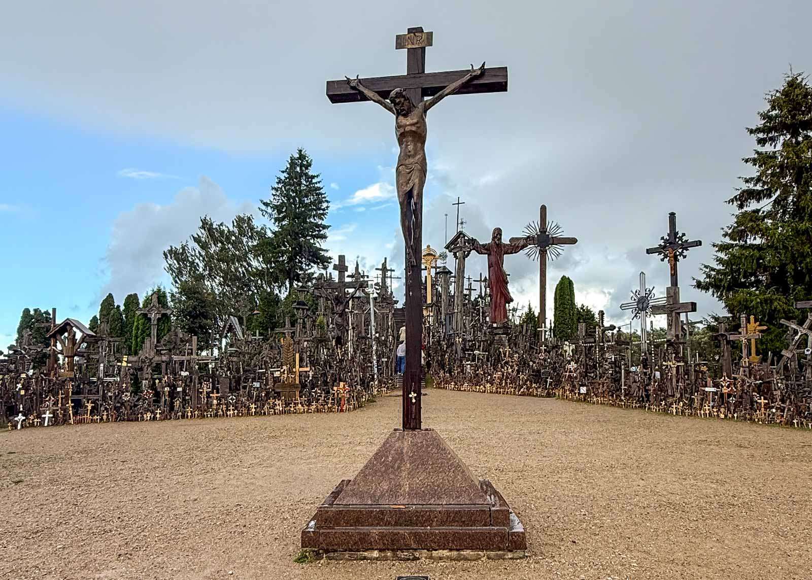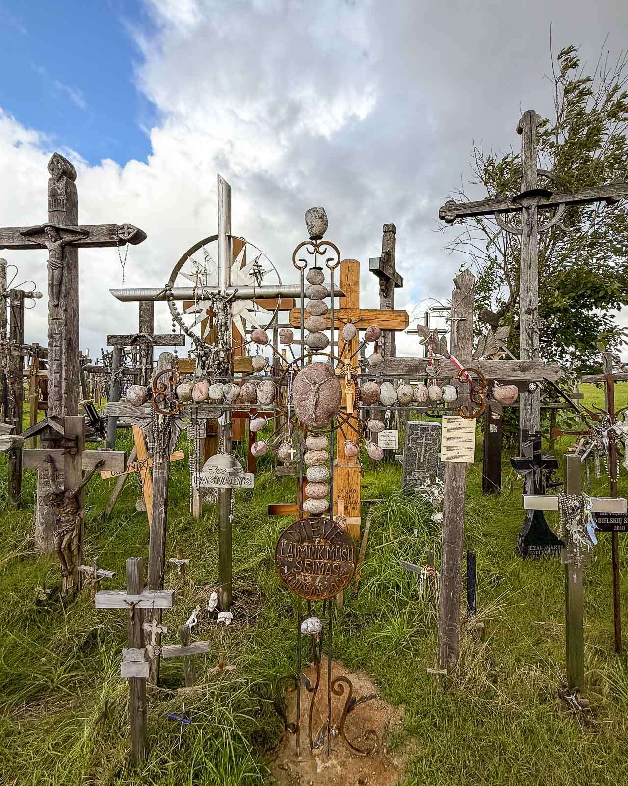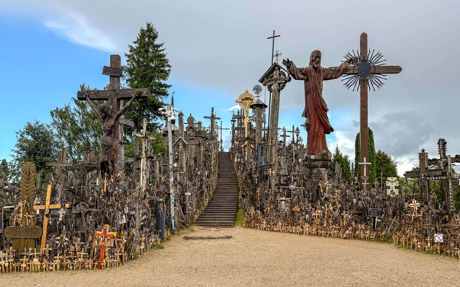 Ristikukkula sijaitsee Liettuassa, Siauliain kaupungin lähellä, mutta runsaat 10 km sen keskustasta pohjoiseen. Monet autolla vaikka Via Balticaa Tallinnasta Keski-Eurooppaan ajaneet ovat poikenneet siellä, vaikkei se ihan Via Baltican varrella olekaan. Me toteutimme ehkä viimeisen Baltian kierroksemme julkisilla. Junamatkamme Klaipedasta Vilnaan kulki kyllä Siualiain kautta, mutta Ristikukkulalla käynti olisi melkein vaatinut yöpymisen Siualiaissa, joten päädyimme lopulta päiväretkeen Riikasta, sillä halusimme lopulta, mekin, kokea tuon(kin) nähtävyyden itse. Ristikukkulan info-pisteen kartan reunassa oli mietelause “Better to see something once than hear about it a thousand times.” Tosi osuvasti sanottu, ainakin meidän osaltamme!