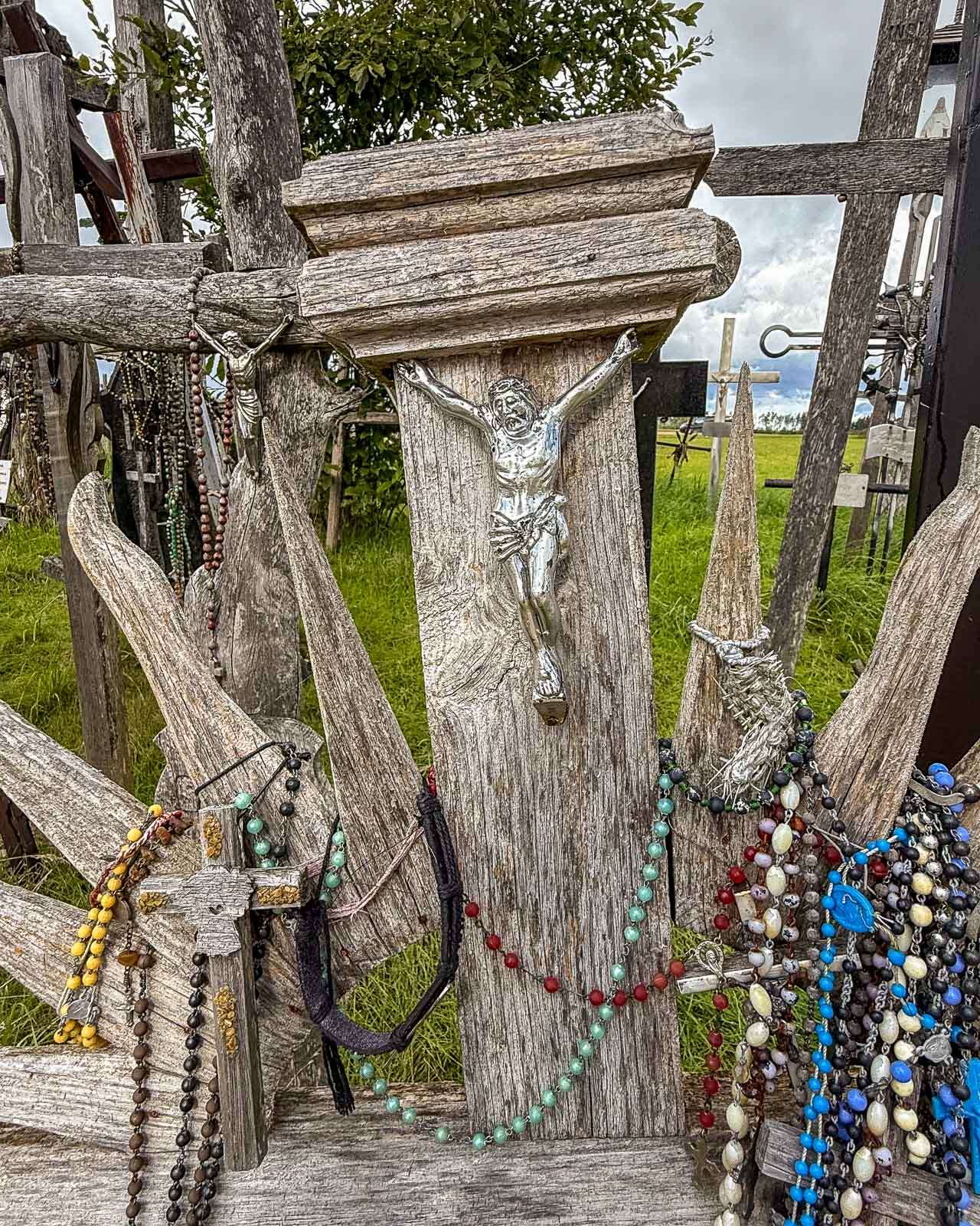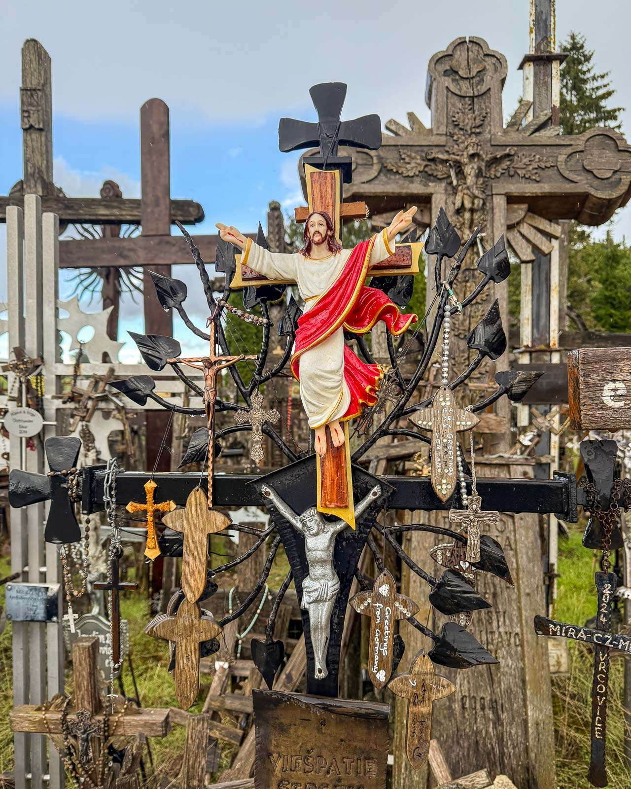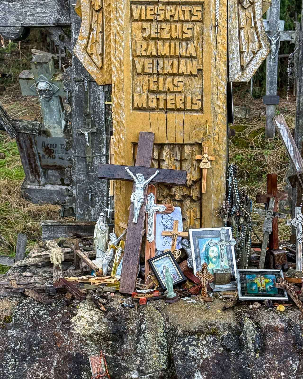 Ristikukkula sijaitsee Liettuassa, Siauliain kaupungin lähellä, mutta runsaat 10 km sen keskustasta pohjoiseen. Monet autolla vaikka Via Balticaa Tallinnasta Keski-Eurooppaan ajaneet ovat poikenneet siellä, vaikkei se ihan Via Baltican varrella olekaan. Me toteutimme ehkä viimeisen Baltian kierroksemme julkisilla. Junamatkamme Klaipedasta Vilnaan kulki kyllä Siualiain kautta, mutta Ristikukkulalla käynti olisi melkein vaatinut yöpymisen Siualiaissa, joten päädyimme lopulta päiväretkeen Riikasta, sillä halusimme lopulta, mekin, kokea tuon(kin) nähtävyyden itse. Ristikukkulan info-pisteen kartan reunassa oli mietelause “Better to see something once than hear about it a thousand times.” Tosi osuvasti sanottu, ainakin meidän osaltamme!
