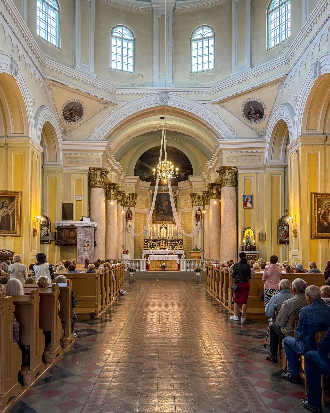 Daugavpilsissä kävimme vain keskustassa sijaitsevassa Pyhän Pietarin katolisessa kirkossa, joka sattui olemaan hotellimme, Homelike Hotel, lähin naapuri. Sunnuntai Daugavpilsissä houkutteli meidätkin kurkistamaan jopa sisälle kirkkoon idealla, että kun kaikki muutkin näyttivät suuntaavan kirkkoon, niin kurkistetaan mekin sinne.