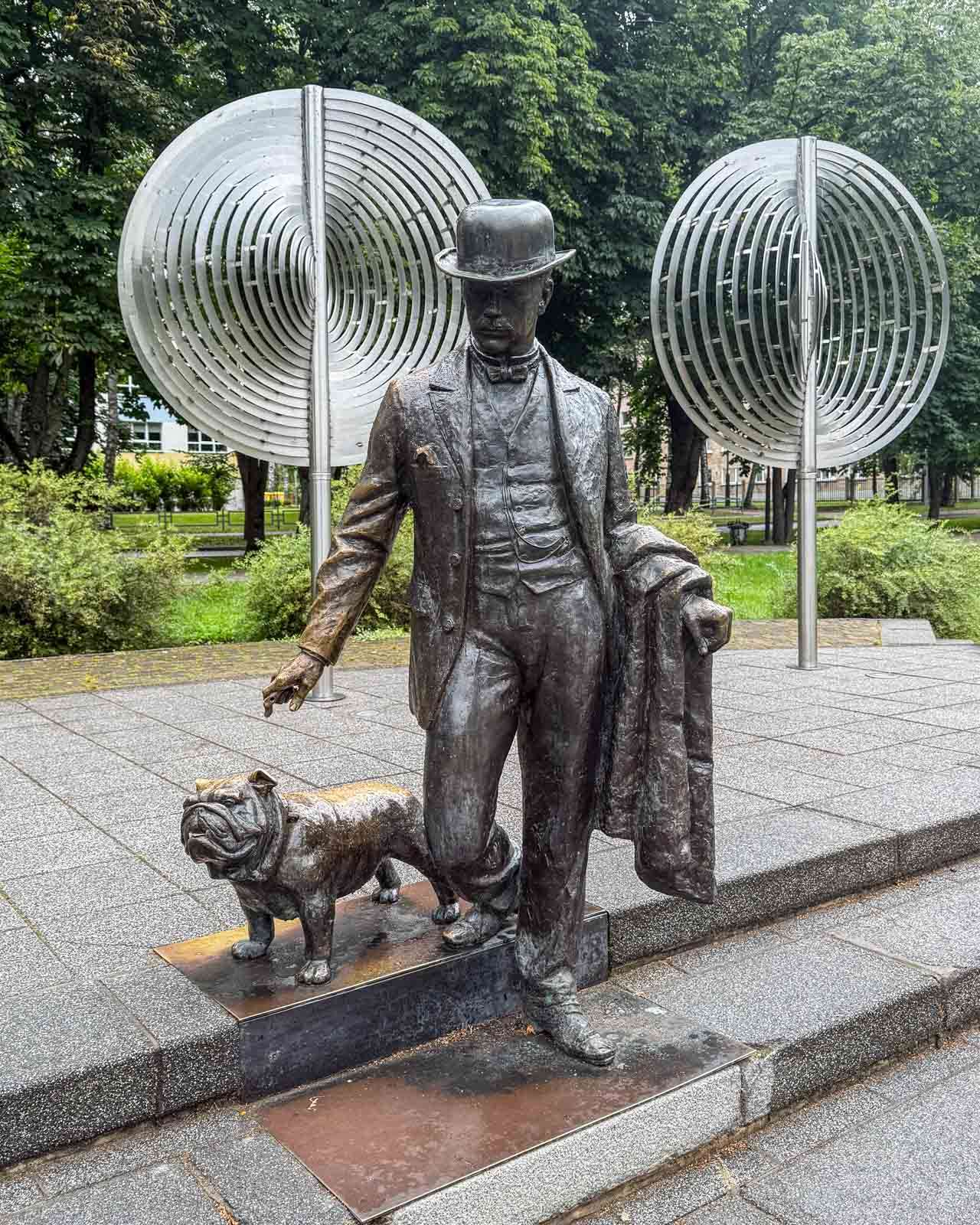 Dubrovinan puisto jää kävelykadun varrelle, keskustan ja Daugava-joen väliselle alueelle. Puisto alkaa ison neuvostotyylisen Latgale-hotellin edustalta, jota Booking.com sinnikkäästi meillekin isona hotellina tarjosi, mutta yhtä sinnikkäästi sen sellaisena ohitimme. Kokemukset Chisinaun Cosmos-hotellista ja Tashkentin Uzbekistan-hotellista riittivät meille tätä sarjaa.