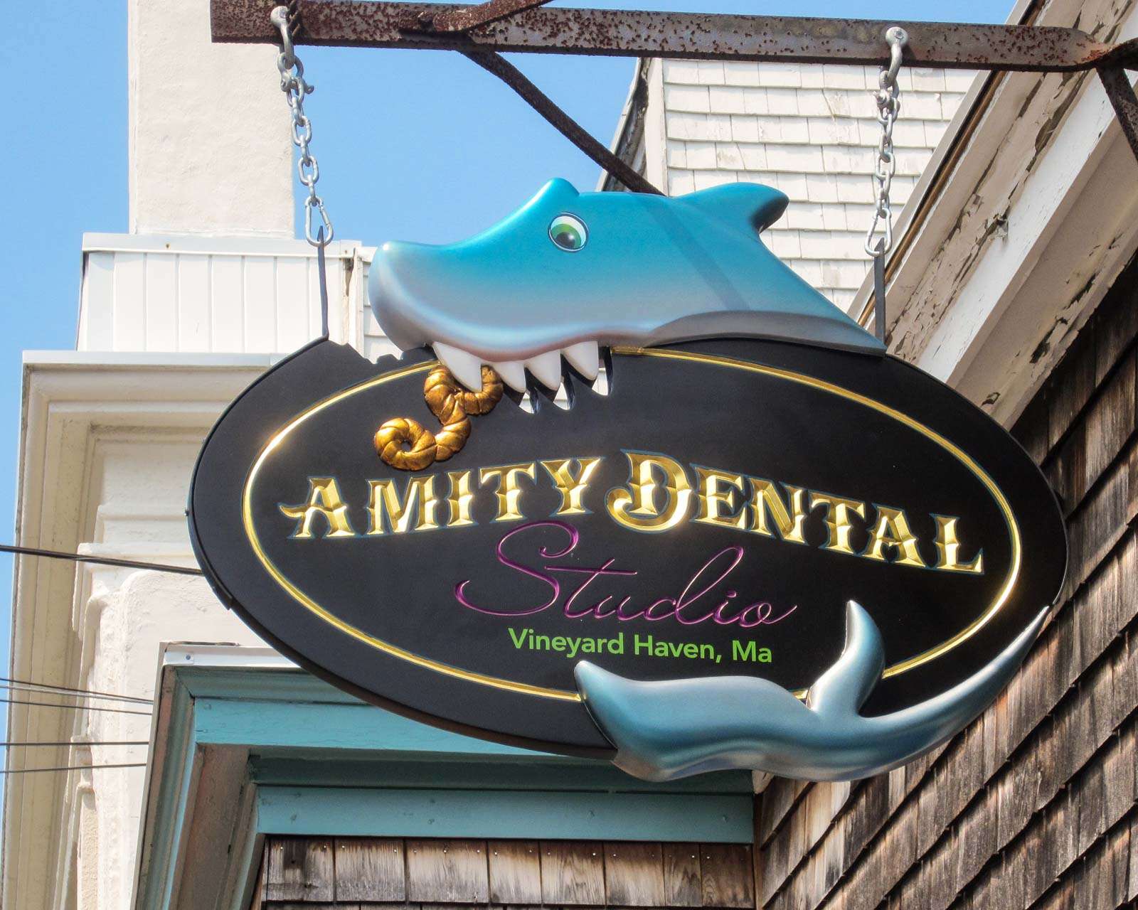 Kesällä 2012 vierailimme Martha’s Vineyardilla, siis Amityn (kuvitteellisessa) kaupungissakin, jota tappajahait terrorisoivat useamman elokuvan verran. Varsinainen kimmokkeemme matkalla tuonne oli Nantucketin saari, mutta koska Nantucket ja Martha’s Vineyard sijaitsevat melkein vierekkäin, niin jaoimme viikkomme tuolla suunnalla näiden kahden saaren välillä. Kummatkin saaret ovat helposti yhdistettävissä New Yorkin reissuun – mitä nyt majoitukset ainakin kesäkaudella on syytä varata hyvissä ajoin, sillä saaret ovat suosittuja.