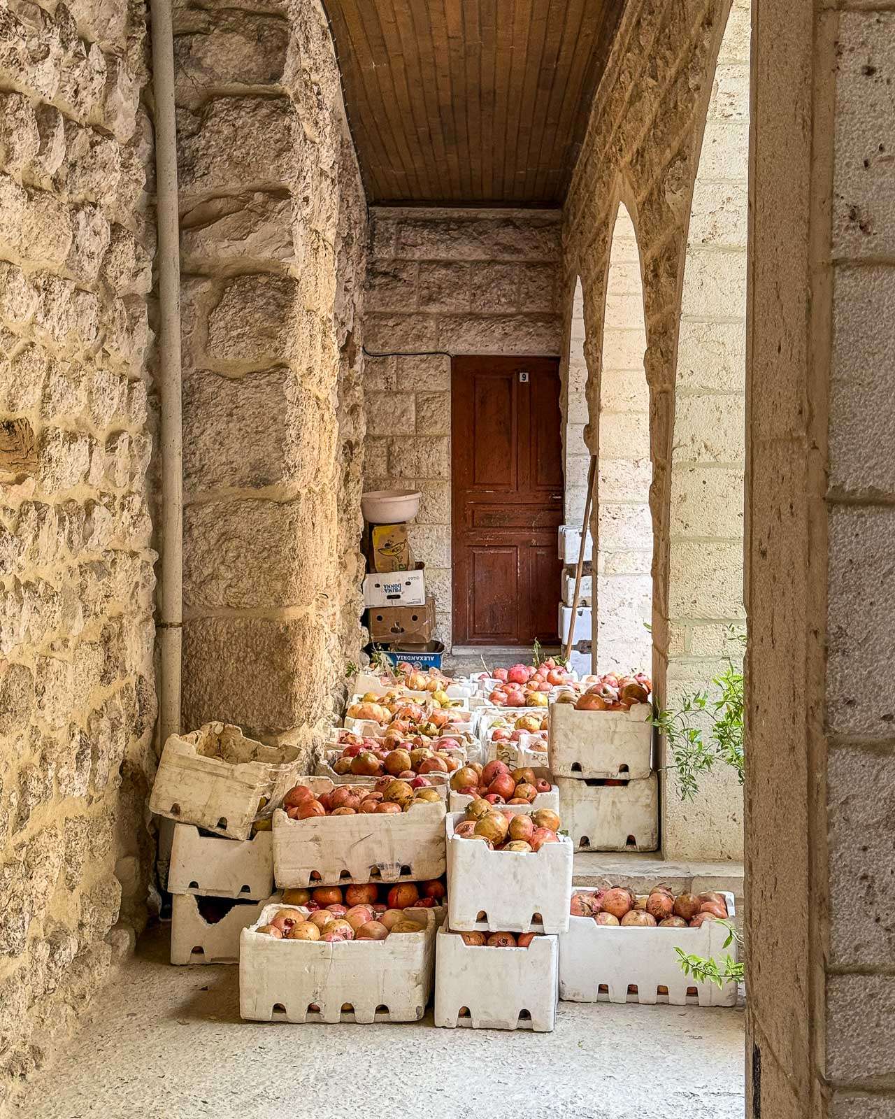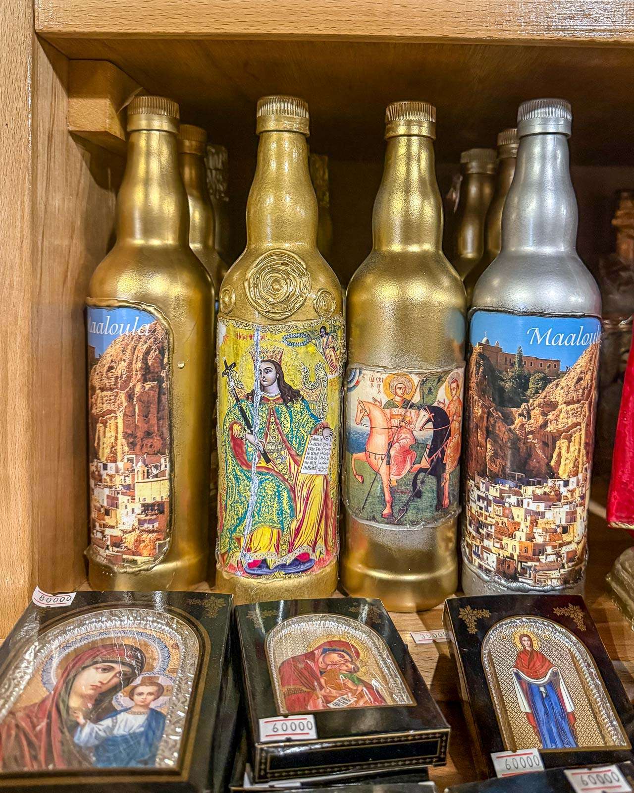 Luostari ja sen yhteydessä oleva matkamuistomyymälä ja kahvila ovat mielenkiintoinen sekoitus harrasta menneisyyttä ja nykyaikaa, vaikka turistien tarpeisiin. Luostarin pihalla puristetaan mehua granaattiomenoista ja sen myymälässä pääsee maistelemaan paikallisia viinejä tai vaikka ostamaan niitä mukaansa. Kahvilasta voi ostaa oluttakin, mitä ei Syyriassa kovin monessa paikassa myydä, sillä onhan maan valtauskonto kuitenkin islam. Oppaidemme mukaan muillekin uskonnoille on kuitenkin tilaa eikä konflikteja esiinny. Tosin niiden hillitsemiseen taidetaan panostaa koko ajan, sillä myöhemmin alhaalla kylässä poliisit olivat näkyvästi läsnä lähestyvän kansanjuhlan takia.
