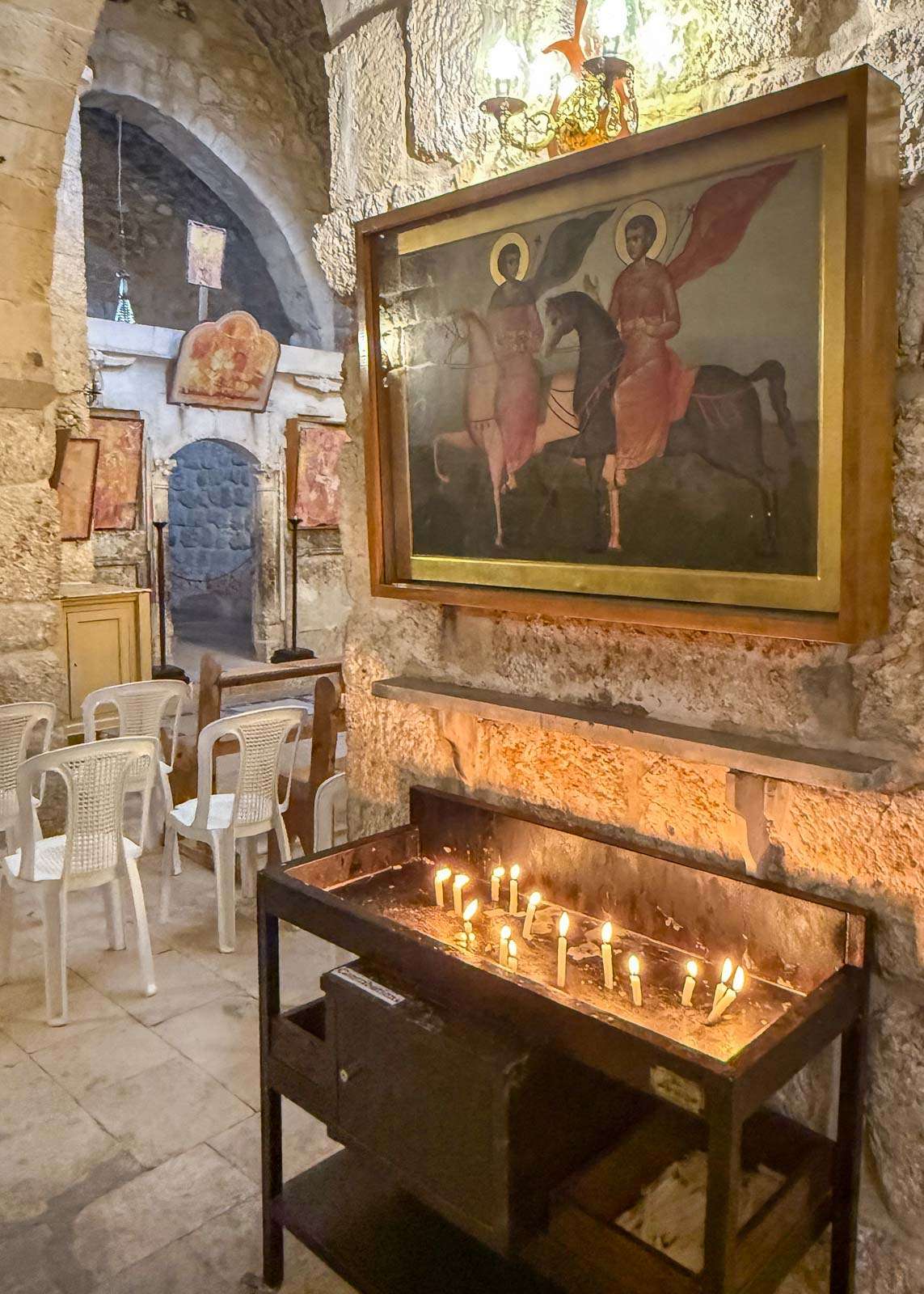 Maaloulan kyläkin sai osansa sisällissodasta, senkin hallinnasta taisteltiin erityisesi vuonna 2013, mutta satunnaiselle turistille kylä näytti jo vuonna 2025 melko ehjältä. Ehkä kuitenkin tästä syystä kävimme vain Pyhän Sarkisin luostarissa emmekä kylän toisessa, Pyhän Teklan luostarissa? Veikkaisin kuitenkin, että molemmat luostarit pyritään saamaan/pitämään kunnossa, sillä ne ovat olleet pyhiinvaelluskohteita ja sen myötä juuri luostarit tuovat kylään turisteja.