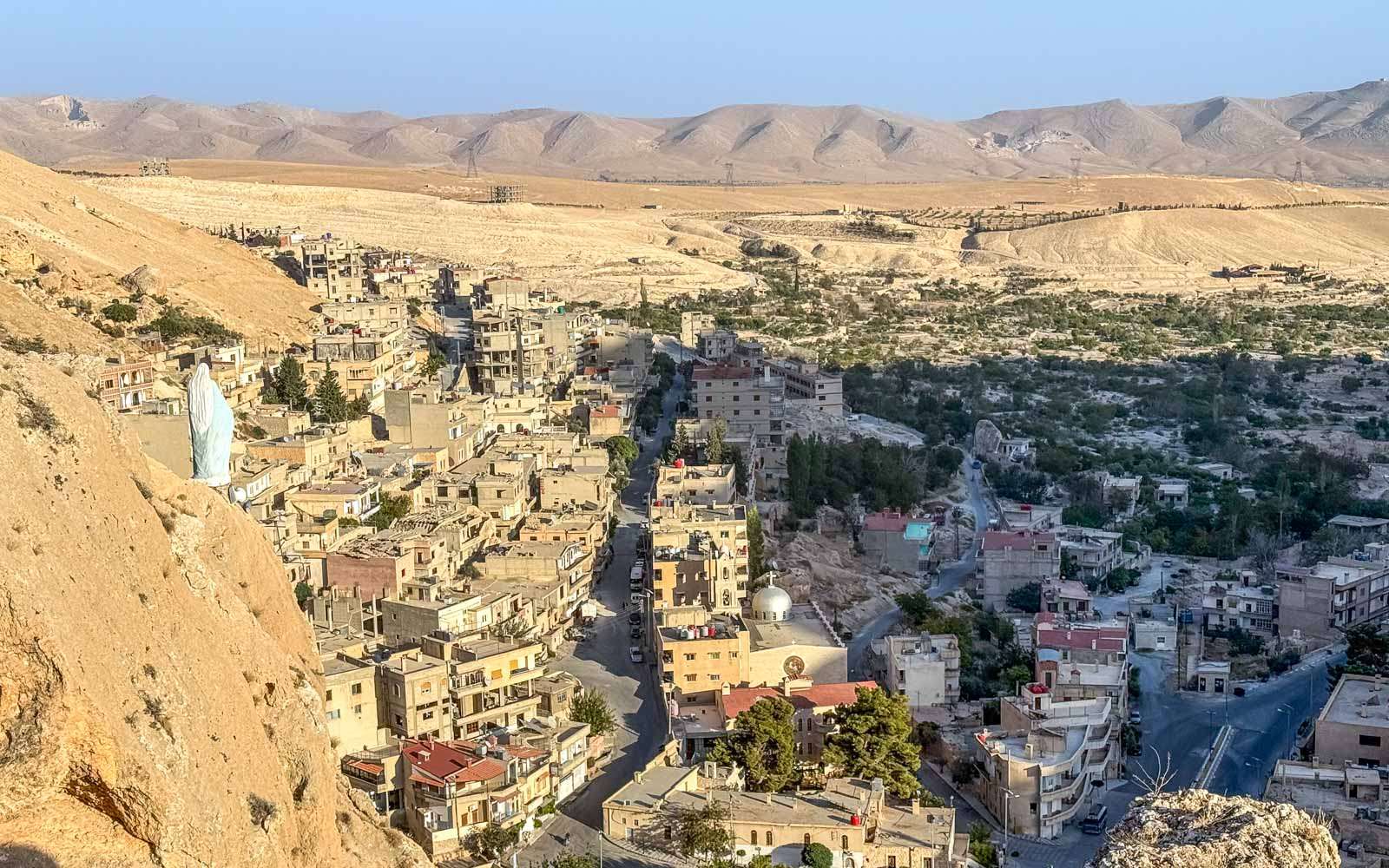 Matkalla Alepposta Damaskokseen poikkesimme myös pienessä Maaloulan kylässä korkealla Qalamounin vuoristossa. Kylän alle 3 000 asukkaat ovat pääosin kristillisiä, Kreikan katolisia tai ortodokseja ja erityisen tunnettu siitä, että siellä puhutaan arameaa. Kylä on yksi harvoista paikoista maailmassa, missä tuota kieltä edelleen puhutaan.