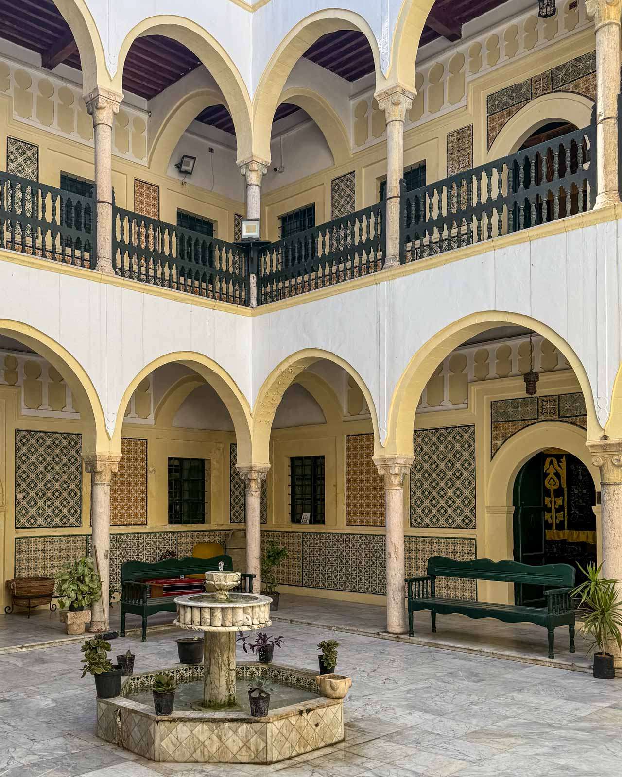 Emme ilmaisseet erityistä kiinnostusta Yusuf Karamanlin taloon, mutta oppaamme mielestä se “kuului ohjelmaamme”, joten poikkesimme sielläkin. Talo on 1800-luvun taitteesta, siis samoilta ajoilta kuin Yhdysvaltain kanssa käyty sota ja USS Philadelphian tuho, mutta nykyisin museona. Talo kuuluu Tripolin vanhan kaupungin suojeltuun osaan, joka on ehdolla Unescon maailmanperintökohteeksi, joten olkoon, ainahan sitä voi muutaman pölyttyneen nuken ja sekalaisen esinekokoelman vilkaista. Rakennus yksityiskohtineen, kuten sisäpihan suihkulähde ja marmorilattiat, oli sitä paitsi kyllä hieno.