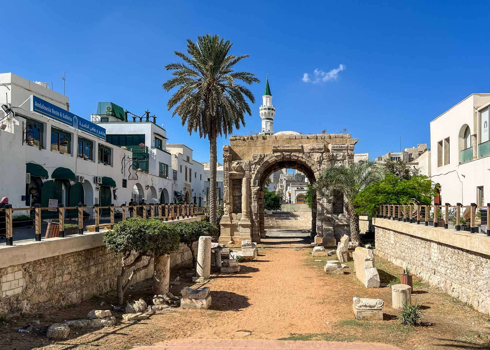 Linnoitukselta suuntasimme Ottomaanien kellotornille ja edelleen Gurgin moskeijalle ja Markus Aureliuksen riemukaarelle. Näistä vaikuttavin oli Markus Aureiluksen riemukaari. Riemukaari on roomalaiselta ajalta, 100-luvulta ja Tripolin ehkä tunnetuin nähtävyys Punaisen linnoituksen ohella.