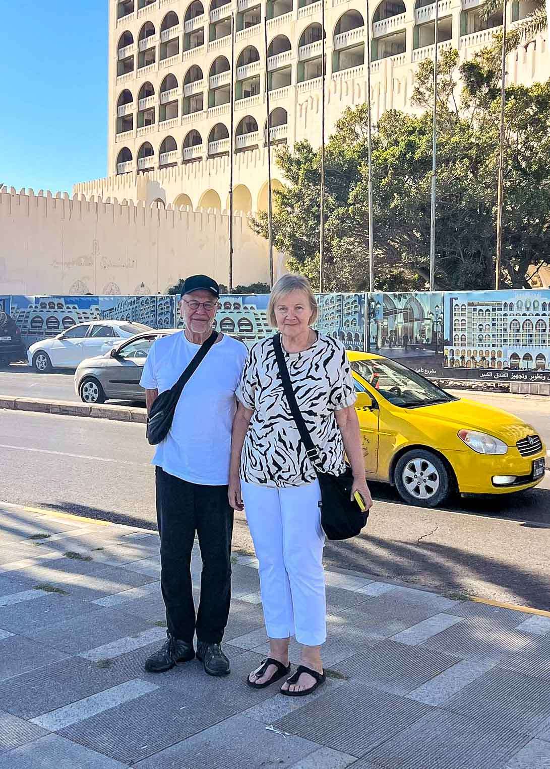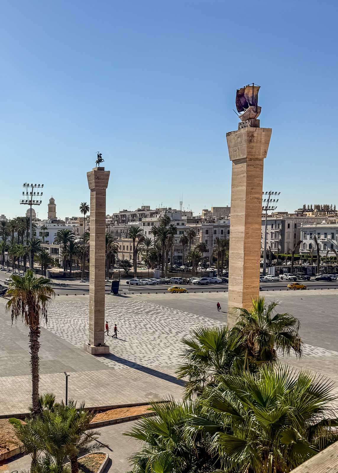 Tripolissa aloitimme Libyassa 80-luvulla asuneen ystäväpariskuntamme takia Grand – hotellin edustalta. Hotelli oli heille jäänyt mieleen noilta vuosilta, kuten myös sen vieressä sijaitseva Marttyyrien aukio, aikoinaan nimellä “Vihreä tori”, Green Square, tunnettu. Grand Hotel oli remontissa, eli sinne emme päässeet, mutta kuvat rakennusta ympäröivässä suoja-aidassa lupailivat sille vielä uutta loiston aikaa?