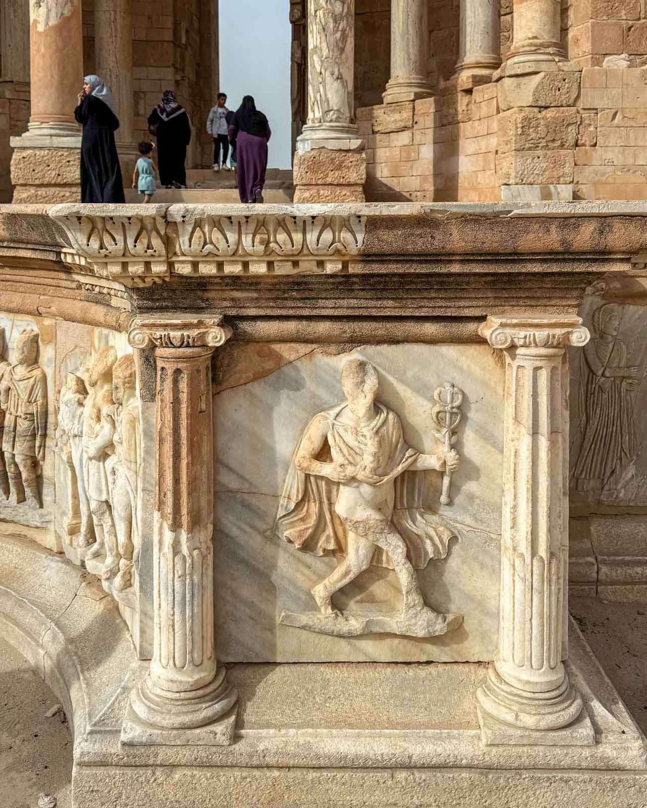 Välimeren etelärannan kohteet ovat hyviä vierailukohteita myös siinä mielessä, että vaikka Rooman tai Kreikan turistiruuhkista ei ole tietoakaan. Etenkin Libyan kohteissa, Sabrathassa ja Leptis Magnassa, joissa toistaiseksi sodan jäljiltä on mahdollista vierailla vain luvalla ja oppaan kanssa, kohteet saa hetkeksi itselleen – muita turisteja ei suurella todennäköisyydellä ole. Libyan matkamme oli Kamelimatkojen käsialaa, eli oppaat ja luvat järjestyivät sitä kautta.
