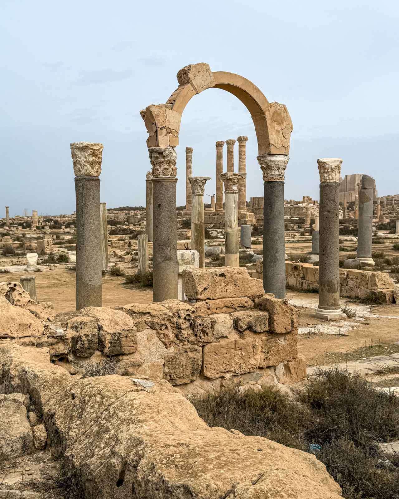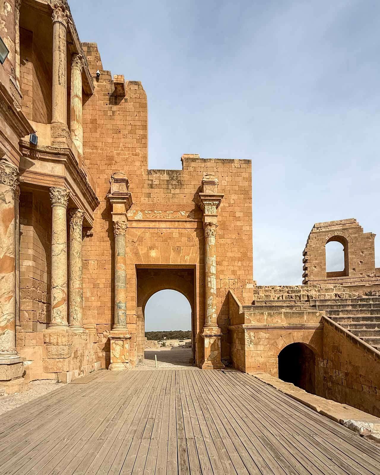 Mainitsin jo tuossa edellä muutamaan otteeseen Leptis Magnaan, joten sananen siitäkin jo. Libyassa on tosiaan toinenkin vähintään yhtä kuuluisa antiikin kaupunki: Leptis Magna, joka sijaitsee Tripolista itään. Sabrathaan verrattuna Leptis Magna on varsinainen suurkaupunki, joka sekin on rakennettu pääosin Rooman vallan aikana. Leptis Magnan kadut ovat leveämpiä, sen foorumit valtavia ja kaivaukset laajempia – mutta Sabratha voittaa tunnelmassa ja teatterillaan. Vierailimme toki Leptis Magnassakin, heti seuraavana päivänä, mutta kirjoitan, tietysti, siitä oman juttunsa.