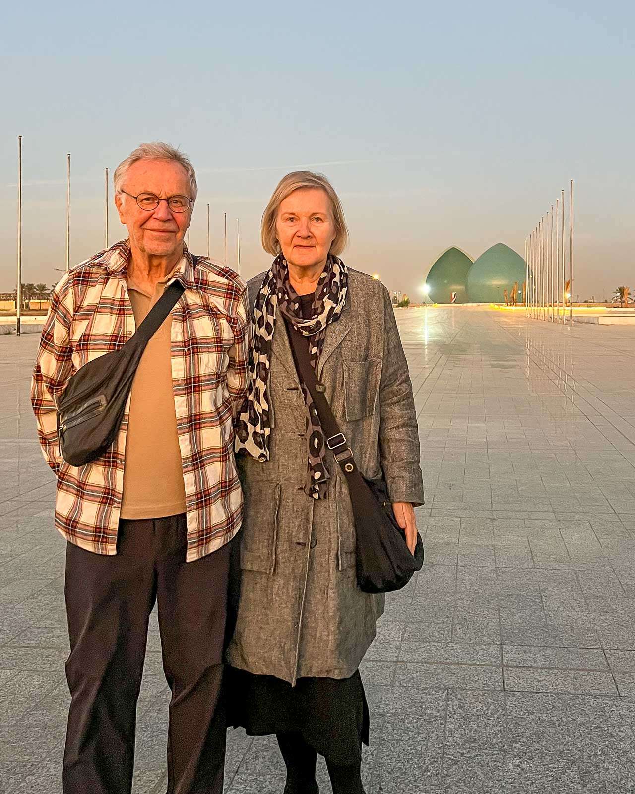 Pyhissä kaupungeissa, Karbalassa ja Najafissa, naisten pukeutuminen oli tiukempaa kuin muualla. Suositus oli naisille, käyttää leveitä housuja ja pitkähihaisia paitoja, mutta näissä kaupungeissa ainakin huivi piti lisätä asuun jo vaikka ostoskeskuksessa pistäytymistä varten. Pyhäkkövierailut, myös Bagdadissa, tarkoittivat naisille jotain abayan tyyppistä asua, jotka matkatoimisto oli meille hoitanut. Mieluiten olisin kuitenkin osallistunut sen valintaan, sillä vaalea kukallinen pussimainen vaate, jossa kaula-aukko kuristi etenkin pitkällä ihmisellä, kun kädet oli tungettu tiukkoihin hiha-aukkoihin, oli mielestäni inhottava. Iranin pyhässä kaupungissa, Qomissa, meille lainatut isot kangasviitat, chadorit, olivat huomattavasti miellyttävämpiä päällä.