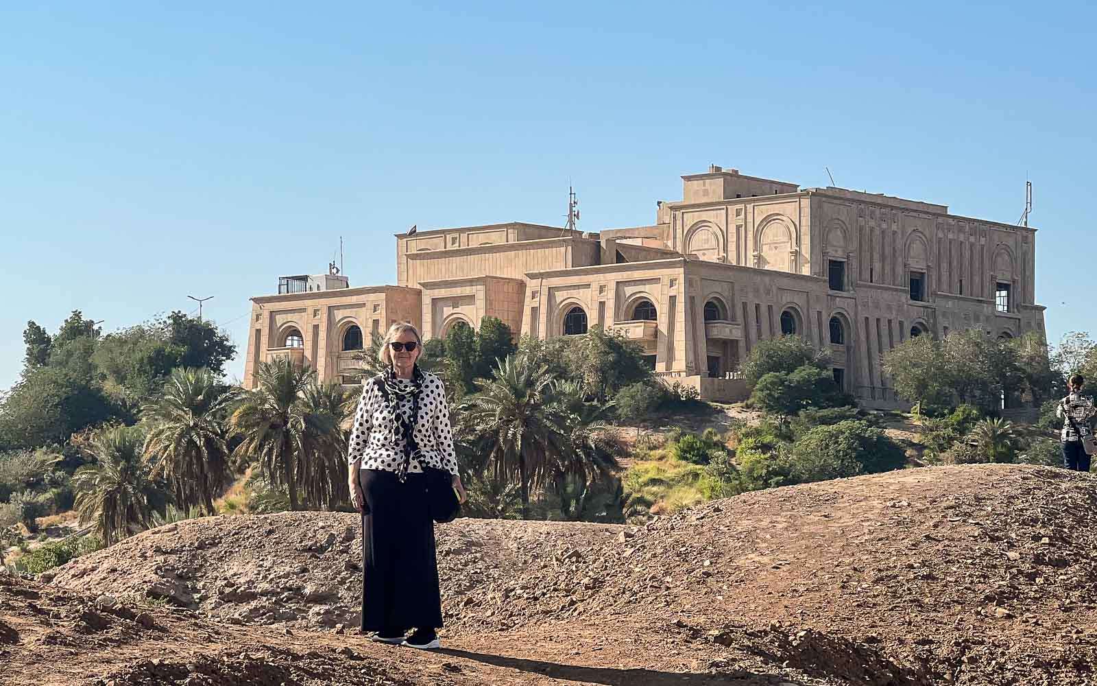 Seuraavana vuorossa on Saddam Husseinin palatsi! Tai no, emme pääse itse palatsiin, mutta päädymme ihailemaan sitä – ja sen viereen sentään jätettyä – Nebukadnessar II:n vieraspalatsia. Palatsi oli kuulemma massiivinen, marmoroitu ja koristeellinen kompleksi, jossa oli useita saleja, terasseja ja vartiorakennuksia, enemmän symboli kuin käytännöllinen asuinpaikka – nyt senkään loistosta ei taida olla paljoa jäljellä. Tyhjä ja rapistunut palatsi symboloi nyt Saddamin ajan poliittista suuruuden hulluutta. Eikä tainnut lopulta yritys asemoida itseään menneiden hallitsijoiden ketjuun auttaa Saddam Husseinia kovin pitkälle.
