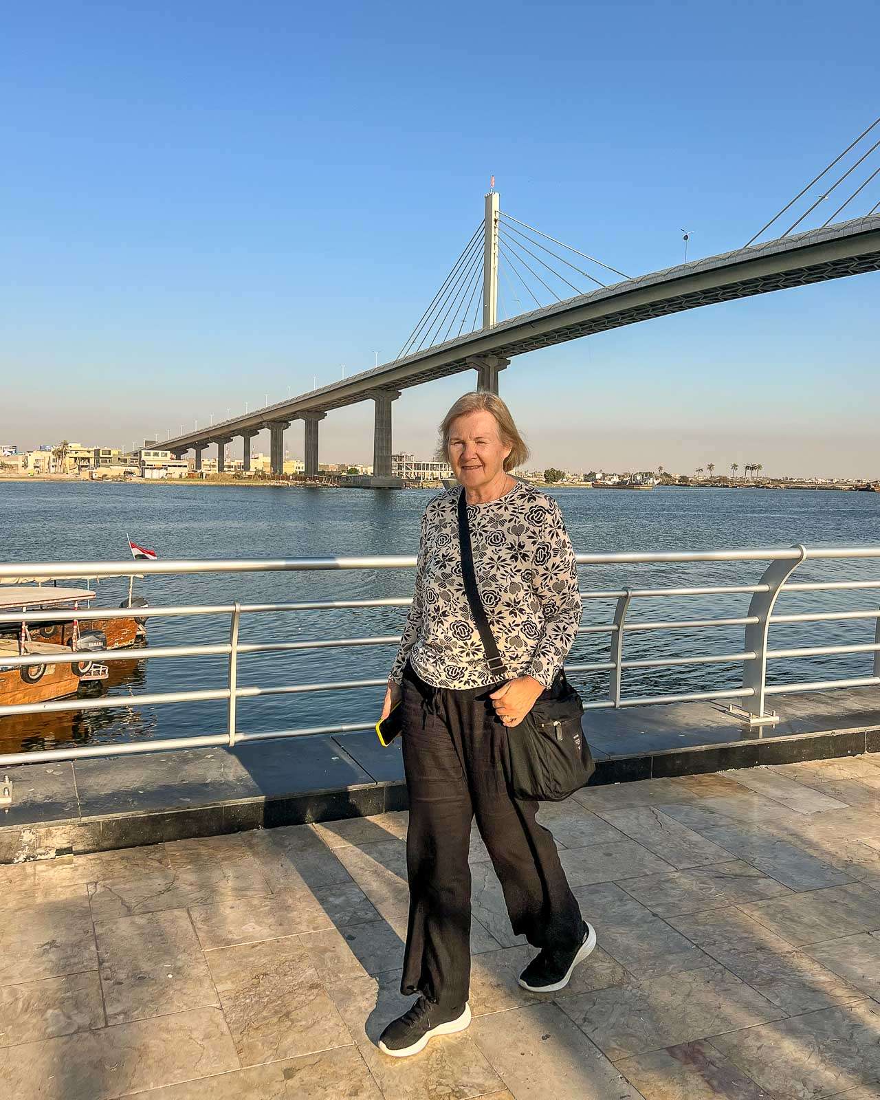 Basran tutustuimme niin kävelleen kuin pienellä veneretkellä. Rantabulevardilla olemme hetken osa kaupungin sykettä, sillä kuten kautta maailman ihmiset viihtyvät täälläkin mielellään rannalla, kävellen, ravintoloissa tai ihan vaan istuen rannan penkeillä. Joen yli menevä Italialaisena siltana tunnettu, Muhammad Baqir al-Sadrin silta, on komea ja vetää sekin ihmisiä luokseen.