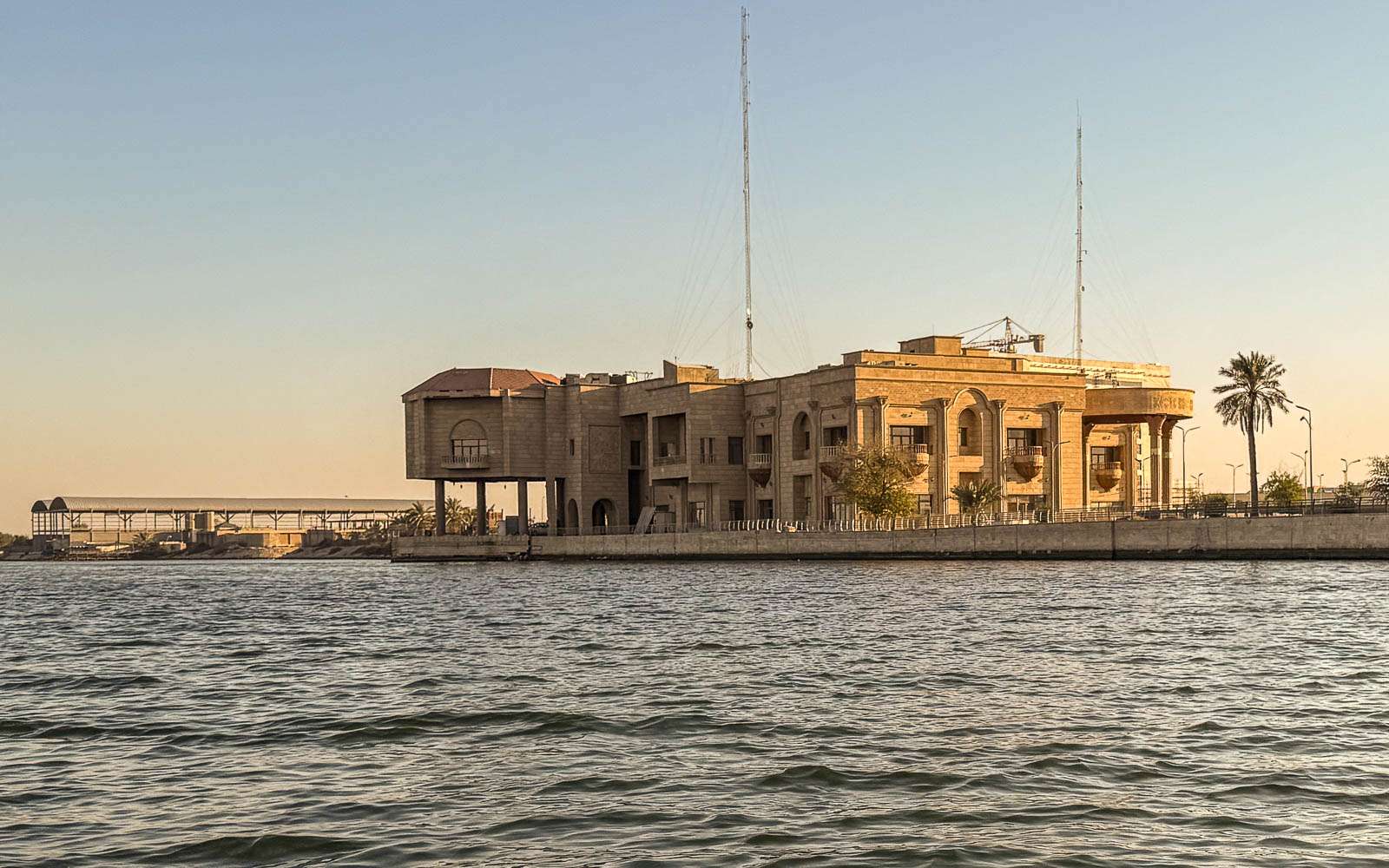 Me olemme kuitenkin matkalla itse joelle. Veneretki tarjoaa hiukan toisenlaisen näkökulman Basraan ja sen satamaan ja mahdollisuuden tarkastella nyttemmin tietysti jo hylättyä Saddamin palatsia, jollainen löytyy tietysti Basrastakin. Saddam käytti sitä edustustiloina ja vieraiden vastaanottopaikkana symboloimassa valtaansa myös Basrassa. Saddamin jälkeen palatsi oli brittiläisten joukkojen käytössä ja nyt siitä kaavaillaan museota.