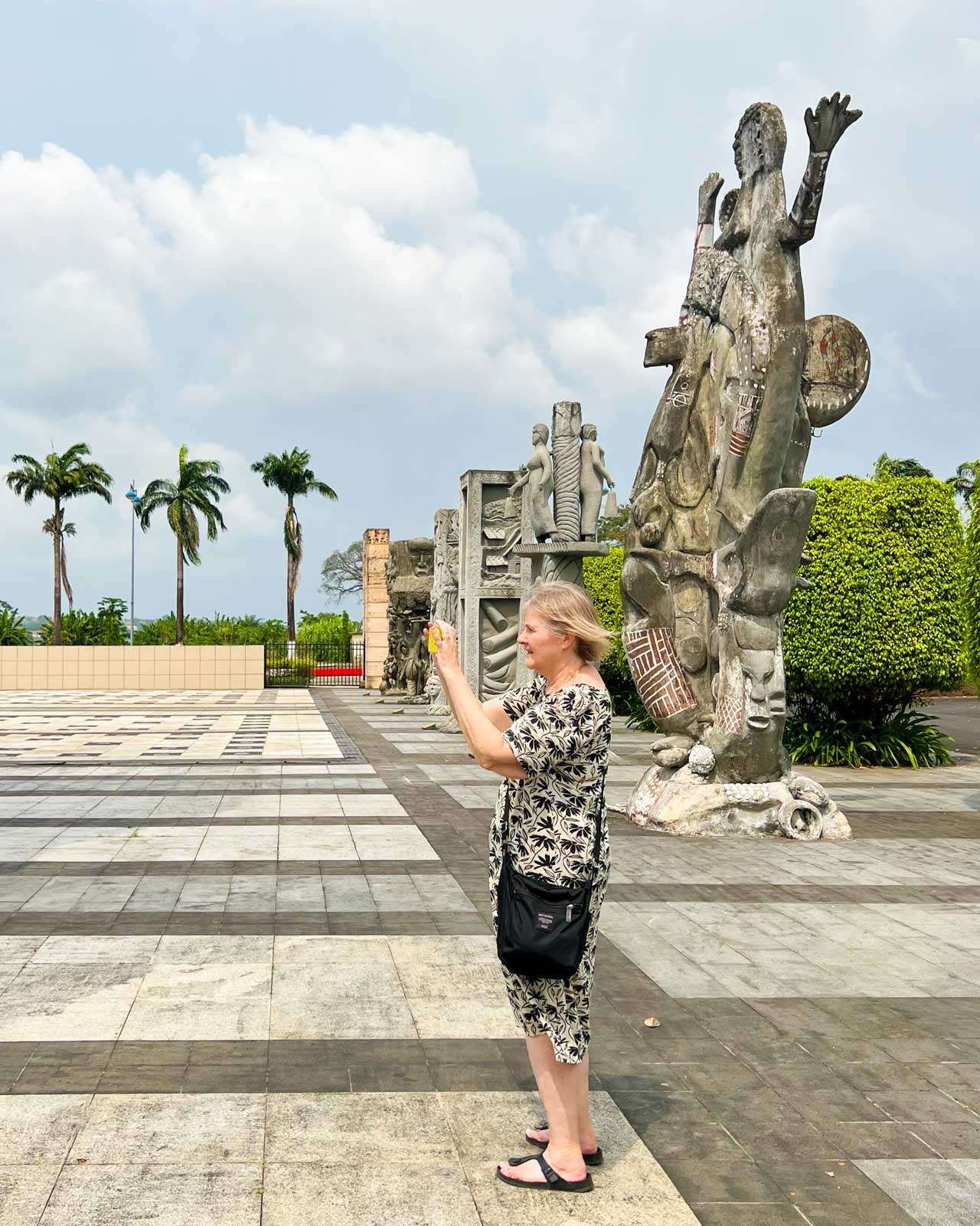 Poikkesimme ensin naisten aukiolla, jossa oli muutamia patsaita ja valokuvaseinä, jossa oli kuvia maan keskeisistä naispuolisista vaikuttajista. Keskimmäisenä presidentin vaimo ja loput ilmeisesti enemmän tai vähemmän presidentin sukua. Sittemmin monessa kohdin saimme kuulla, että tämä tai tuo rakennus tai yritys ovat presidentin vaimon. Ehkä ideana on ollut, että omaisuus on vaimon nimissä, kun vaimo kovin usein mainittiin.