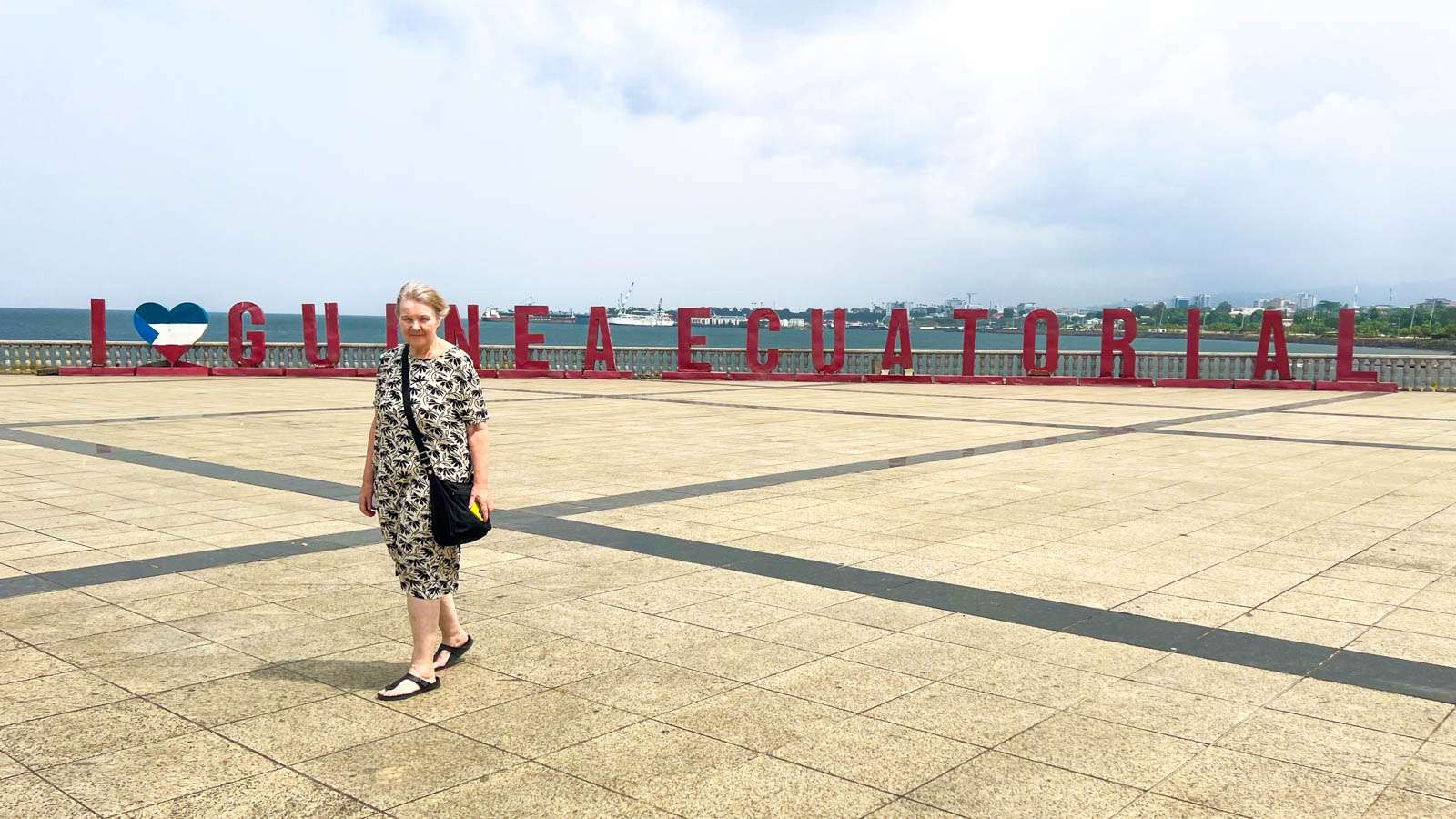 Konferenssikeskuksen jälkeen ajelimme vielä rantabulevardia sen verran, että näimme tätä nykyä noin jokaisessa itseään kunnioittavassa kaupungissa olevan “Rakastan tätä kaupunkia” -kyltin. Päiväntasaajan Guinean tapauksessa se vaatiikin tilaa, sillä maan nimi myös englanniksi on pitkä :-)