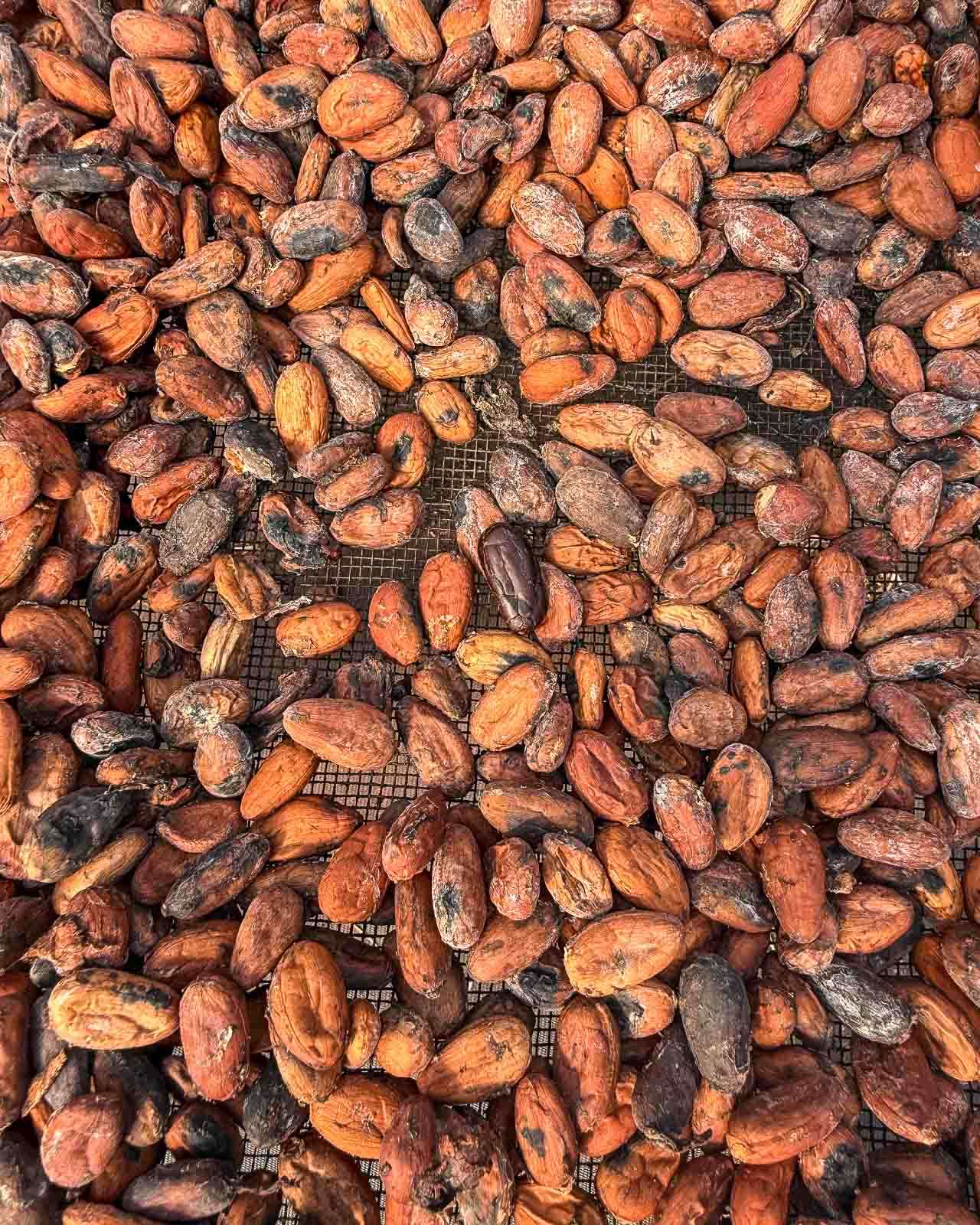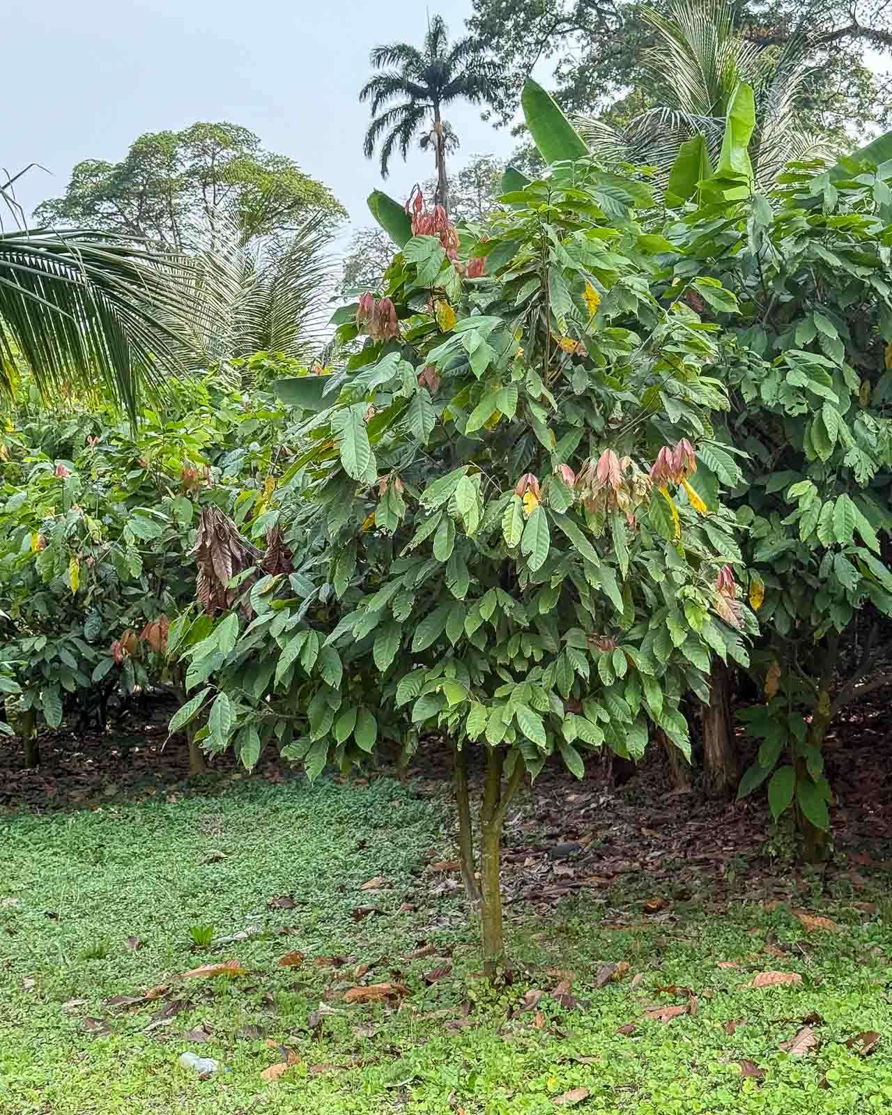 Jos sovitaan, että tuo iso puisto oli Malabon ykköskohde, niin kakkossijan voisin antaa Finca Sampakan jo yli sata vuotta toimineelle kaakaofarmille. Tilan päätuote lienee kaakaopavut ja pippuri, mutta kyllä siellä pieni suklaatehdaskin on. Olemme toki nähneet ennenkin kaakaopuita ja tutustuneet suklaan valmistukseen – Guatemalassa tein alusta loppuun asti itse suklaalevynkin parin tunnin suklaakurssilla – mutta oli silti kiva seurata ja kuunnella ihan kohtuullisen innostuneesti tilan toimintaa esittelevää opasta. Kaakaopuiden lisäksi tiluksilla kasvoi myös kahvipensaita (robustaa tietysti, arabica ei oikein tässä ilmastossa menesty) ja trooppisia hdedelmiä, kuten vaikka papaijoita. Niin, ja tänne asti vaikka pitää lähteä, jotta voisi todeta olevansa niin kaukana kuin pippuri kasvaa.