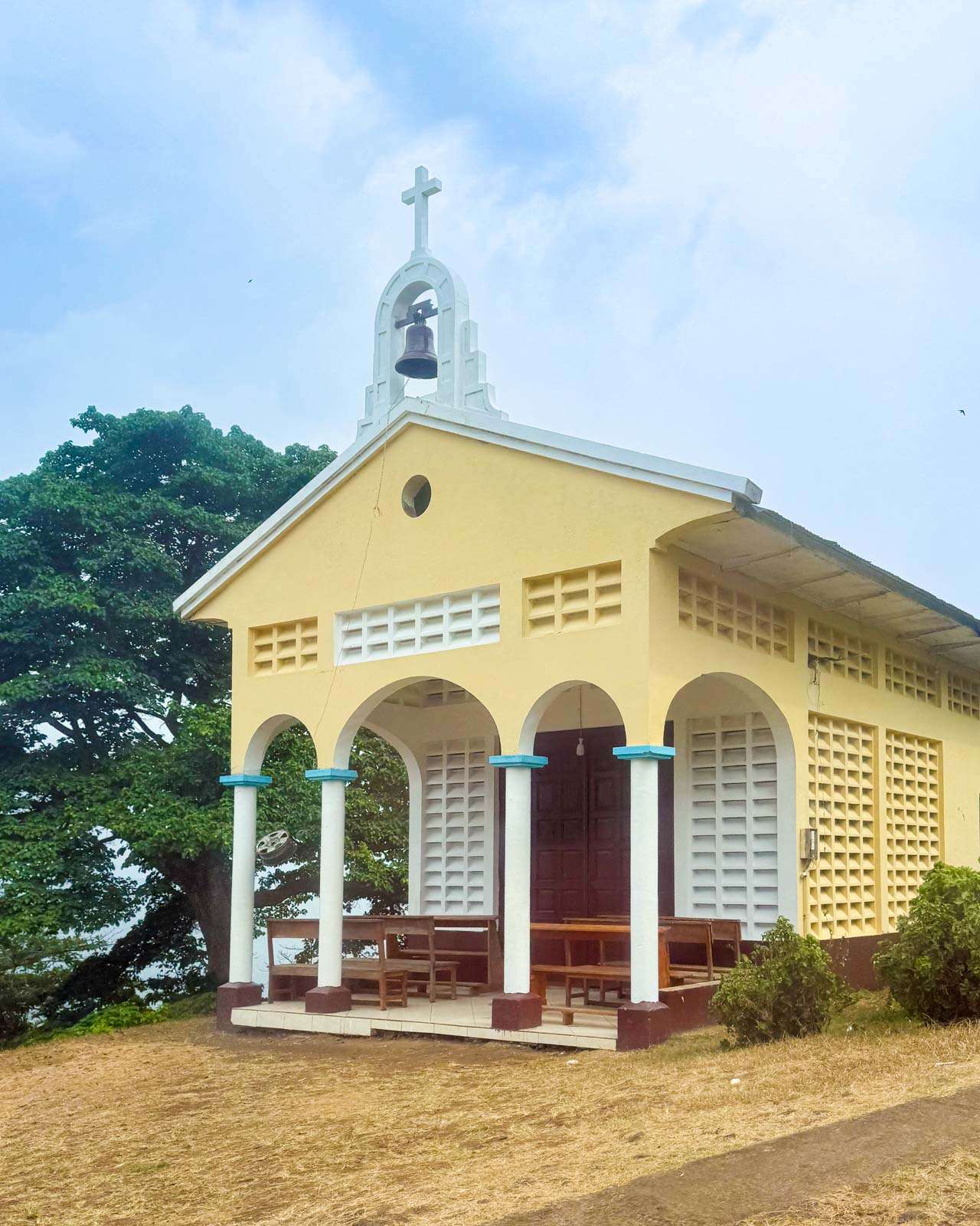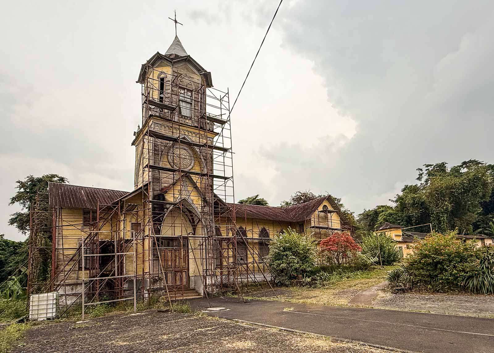 Paluumatka vuorten yli tuntui lyhyemmältä kuin menomatka – näinhän usein on – ja jo kohta olimme Bateten kirkon edustalla. Melkoisen rappeutunut puukirkko on yksi saaren vanhimmista kirkoista ja rakennettu kokonaan puusta joskus 1800-luvulla. Kirkko olisi historiansa takia suojelun ja kunnostuksen tarpeessa ja siitä onkin kuulemma ollut jo jonkun saarella toimivan öljy-yhtiön tarjous auttaa tässä, mutta kun selvisi, että rahat menisivät diktaattorin suvulle kunnostustöiden sijaan, niin tuki vedettiin pois.