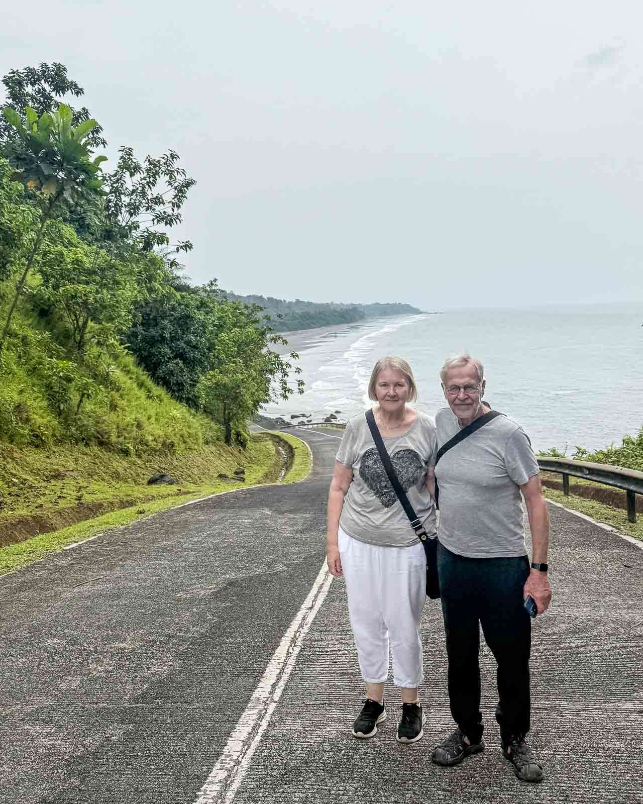 Lubasta matka jatkui yhteen päivän hienoimmista osuuksista: polveilevaa vuoristotietä ylös ja alas kohti etelän syrjäistä Urekan rantaa. Tie kiemurtelee sademetsän keskellä, välillä pilvissä, välillä jyrkänteen reunalla, ja maisema vaihtuu jatkuvasti. Vähän ennen kuin olimme perillä opas pysäytti auton tien reunaan ja komensi meidät ulos – ilmeisesti tässä on paikka, jossa tavataan ottaa kuvia :-)