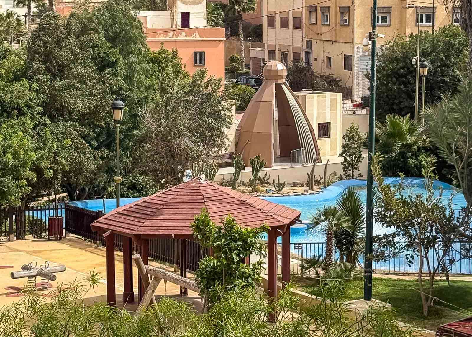 Lopuksi kiipesimme vielä puiston yllä kiertävälle polulle ja kurkistimme aidan yli kaupunkiin. Tällaiselta se näyttää, mutta lisää Laayounesta vähän myöhemmin, nauttikaa nyt aluksi sen lintupuistosta :-)