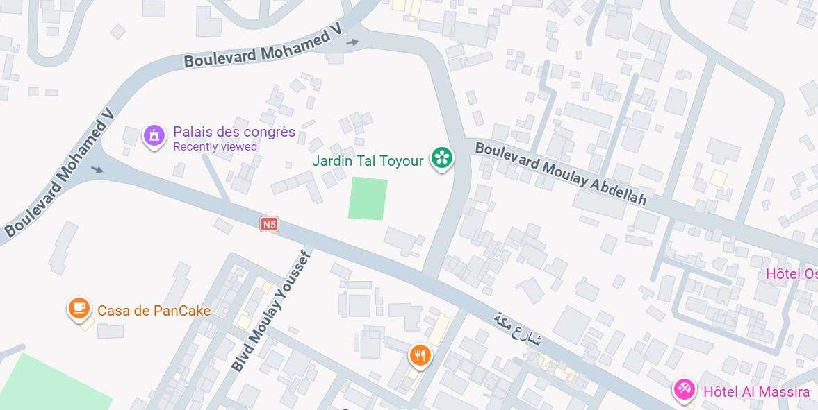 Ensimmäinen ajatuksemme oli yrittää puistoon Boulevard Mekan suunnalta tuosta kongressipalatsin vierestä. Tuolla kadunpätkällä olikin parikin porttia. Mikään niistä ei kuitenkaan ollut auki. Boulevard Mohammed V:lle asti saavuttuamme yksi paikallinen neuvoi meitä palaamaan takaisin, ajatellen ilmeisesti, että joku noista suljetuista porteista olisi sittenkin auki. Mutta eivät ne olleet, eivät. Seuraava meitä ihmettelevä paikallinen arveli, että puisto on kiinni sunnuntain ja/tai Ramadanin takia. Olimme tyytymässä kohtaloomme, ei kai lintupuistoon, Googlen kartassa Jardin Tal Toyourin sitten todellakaan pääsisi.