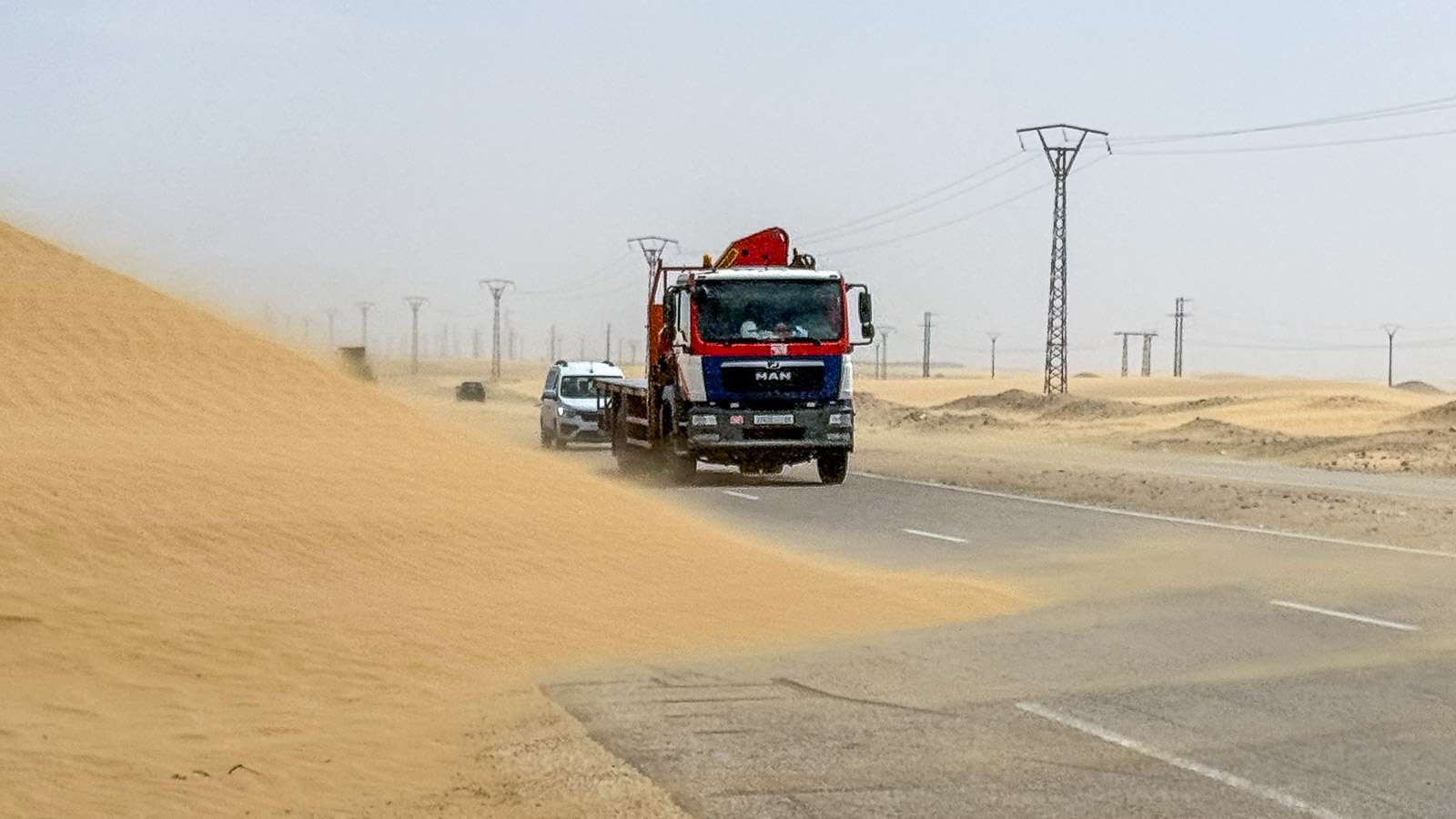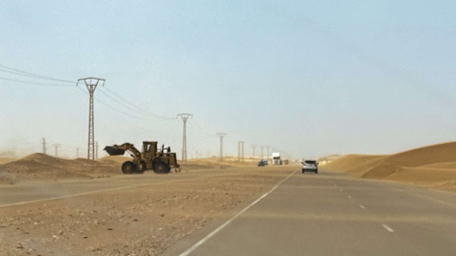 Samalla tavalla hiekkaa myös pidettiin pois tieltä. Traktorit työnsivät sitä sivuun aivan kuten pohjoisessa aurataan lunta. Eurooppalaiselle näky hiekan “auraamisesta” oli hieman absurdi – mutta täällä se on arkipäivää.