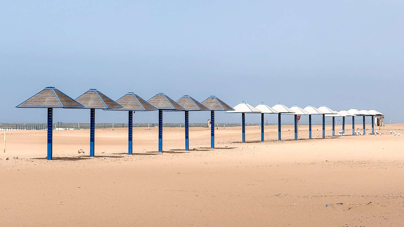Rannalla sijaitsee myös Nagjir Hotel Foum El Oued, joka on sisarhotelli Laayounen keskustassa sijaitsevalle Nagjir Hotel Laayouneille. Oppaamme kertoi kuitenkin, että molemmat hotellit olivat juuri nyt remontissa. Niinpä saimme rannan hetkeksi lähes kokonaan itsellemme. Tai ainakin melkein: hotellin parkkipaikalla seisoi pari itse rakennettua, hieman hyökkäysvaunun näköistä matkailuautoa. Pysähdyimme juttelemaan yhdessä niistä asuvan saksalaispariskunnan kanssa. He vakuuttivat paikan olevan erittäin rauhallinen ja sitä se olikin, ainakin tänään.