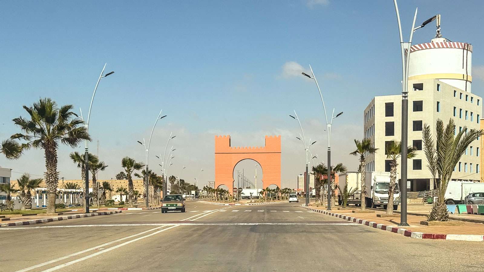 Matka Atlantin rannikolle alkoi lyhyellä pysähdyksellä kaupungin portilla. Afrikkalaiseen tapaan paikasta toiseen siirtyminen ei aina tapahdu noin vain, vaan matkalla tapaa olla checkpoint tai checkpointteja. Länsi-Saharassa Laayounen lähistöllä niitä kuitenkin oli vaan kaupunkien rajoilla, eli ei sentään kymmeniä kuten joskus vaikka Sierra Leonen Freetownin ja Liberian Monrovian välillä, mutta olihan matkaakin tuolla välillä paljon enemmän.