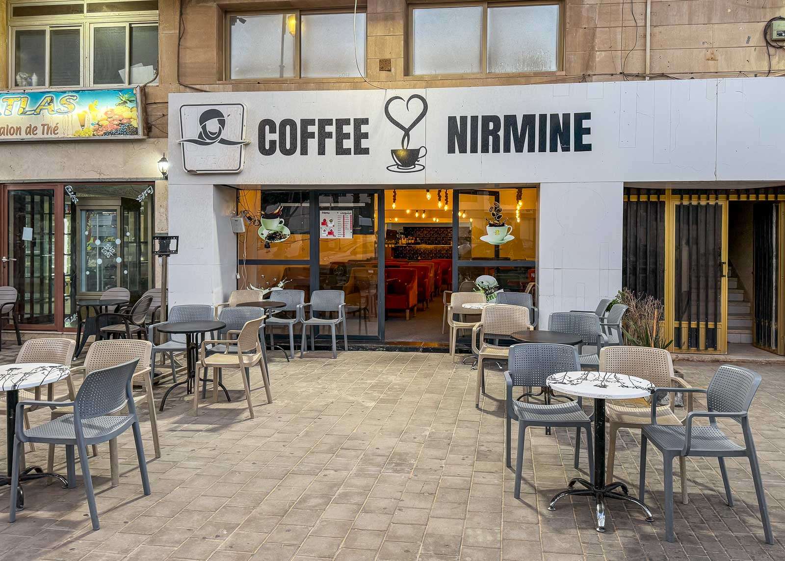 Myöhemmin illalla katselimme hotellihuoneemme ikkunasta miten kadun toisella puolella olevat lukuisat kahvilat aukesivat iltarukouksen jälkeen: tuolit nostettiin kadulle ja ne täyttyivät illan pimeydessä. Tyypillisestihän länsimaissa katukahviloiden tuolit nostetaan sisällä auringon laskiessa, täällä kuvio meni toisin päin.