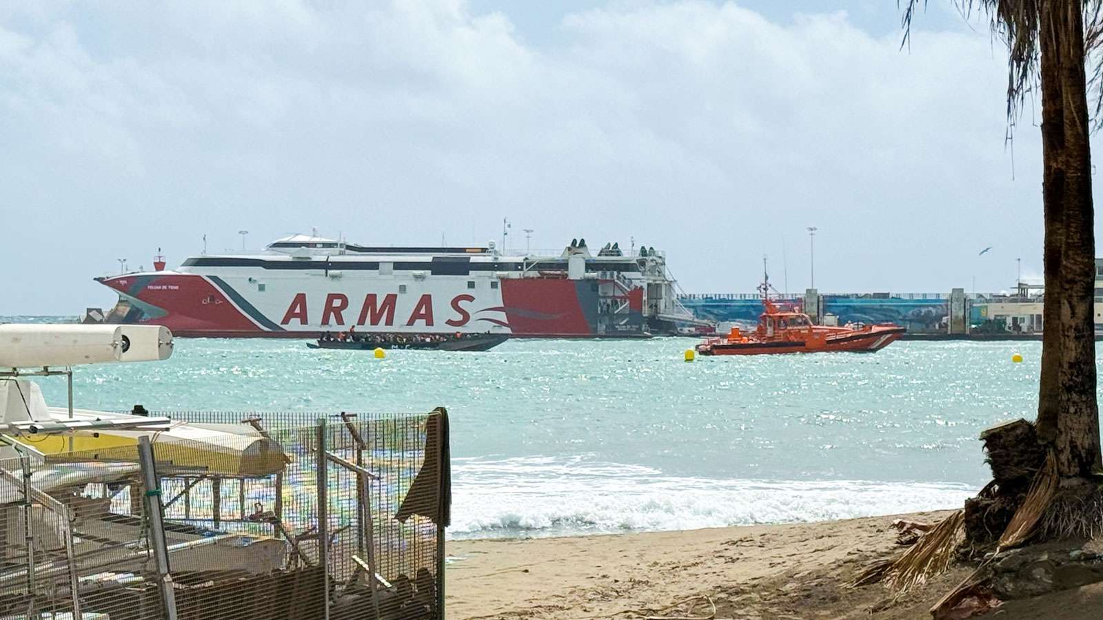 Näimme myös pienemmän, avoimen veneen. Se oli täynnä ihmisiä ja eteni hitaasti hinaajan vetämänä kohti satamaa. Koska kaikki retket oli peruttu, arvelimme kyseessä olevan mereltä pelastettu pakolaisvene – ei tuon kokoisella avoveneellä täällä ainakaan turistiretkiä tehdä. Kanarian saariakin koetteleva pakolaisvirta Afrikasta konkretisoitui Los Cristianoksessakin.