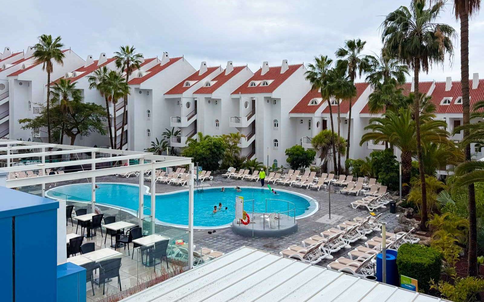 La Gomeran retkemme peruunnuttua innostuin hetkellisesti siitä, että hotellissa oli kaksikin isompaa uima-allasta, sitähän voisi vaikka uida kilometrin tai toisenkin. Vaan ei voinut, Theresa-myrskyn takia altaatkin olivat kiinni. Tarkistin jopa sattumalta melko lähellä hotellia sijaitsevan urheilukeskuksen altaiden tilanteen, mutta nekin olivat tietysti kiinni. Olympiamittainen, 50-metrinen allas olisi kelvannut oikein hyvin!