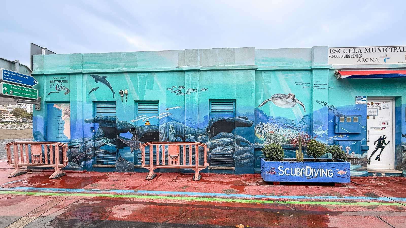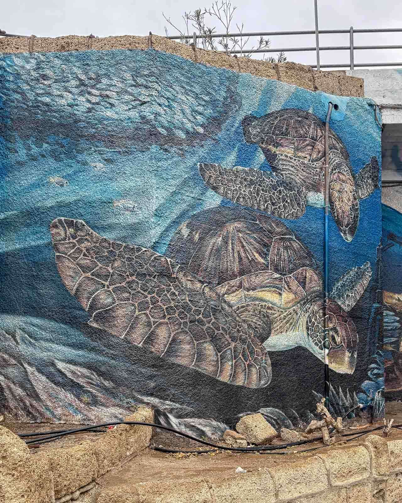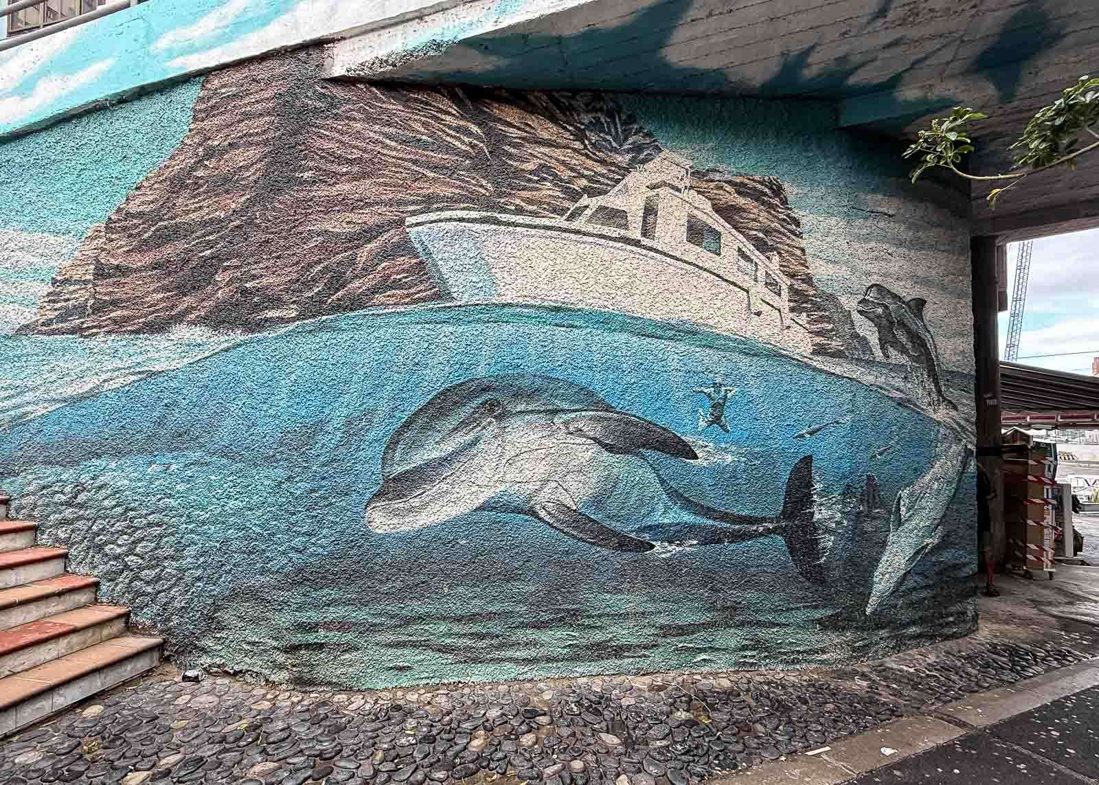 Playa de las Vistasin ja Playa de Los Cristianoksen välillä on alikulkukäytävä, jonka seinämät oli koristeltu merellisin muraalein. Puerto de la Cruzia kiersimme ihan suunnitelmallisesti myös katutaide mielessä, Los Cristianoksessa se tuli vastaan mukavana yllätyksenä.