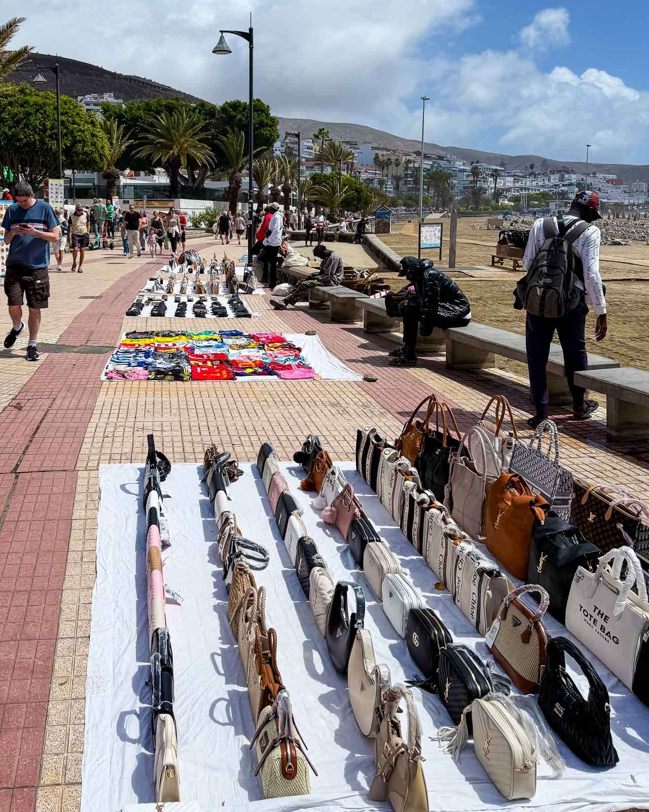 Hotelli tarjosi päivän mittaan noin tunnin välein minibussikyydin Los Cristianoksen keskustaan, jonne kävellen matkaa oli pari kilometriä. Kerran kävimme keskustassa – ja rannoilla – mennen tullen minibussilla, toisella kertaa “osasimme” jo kävellä takaisin hotellille.